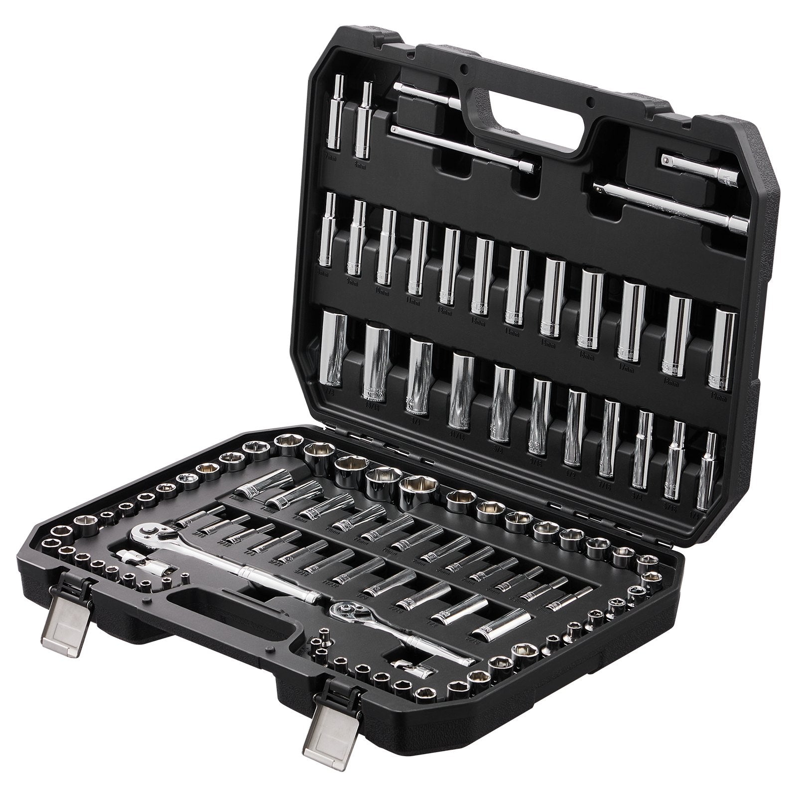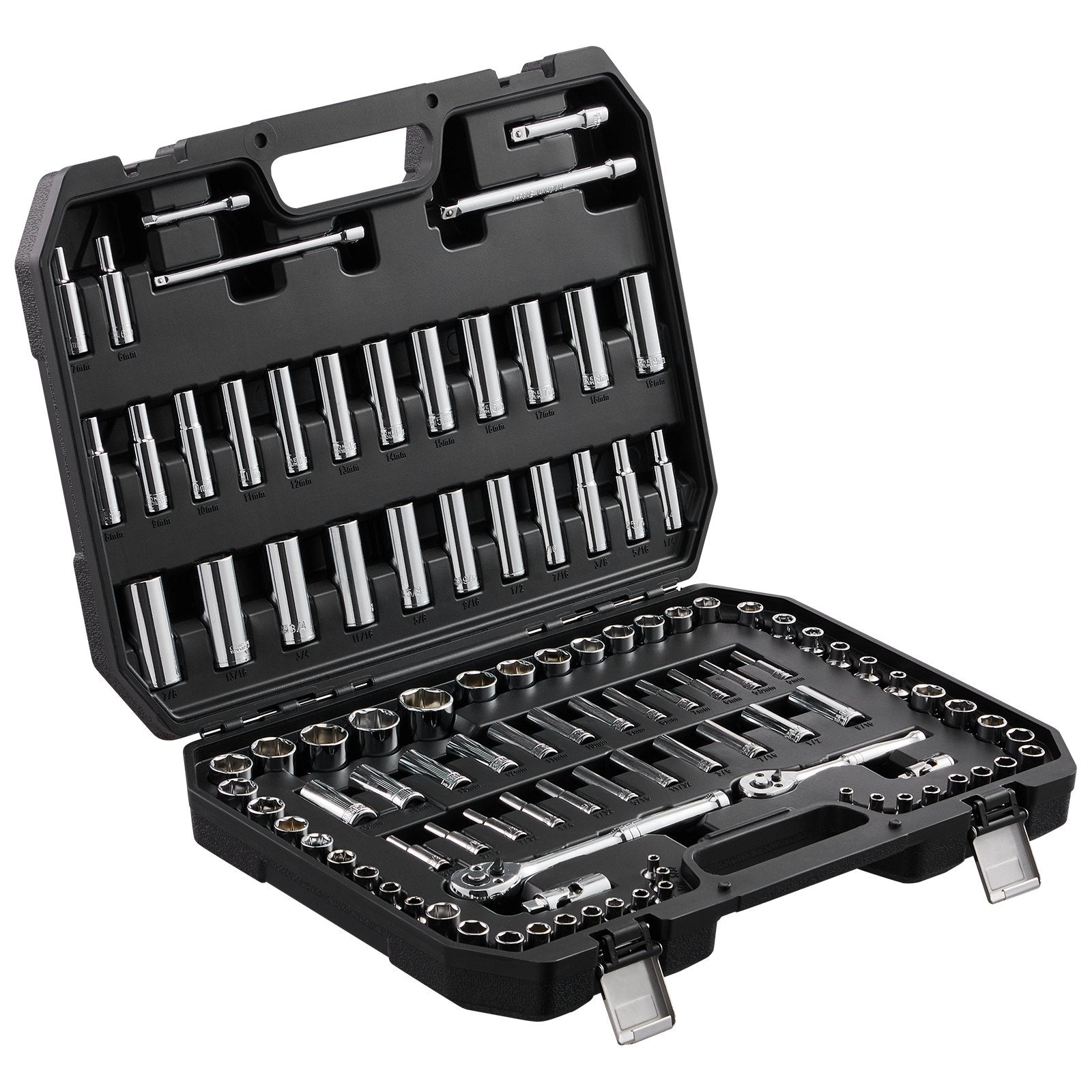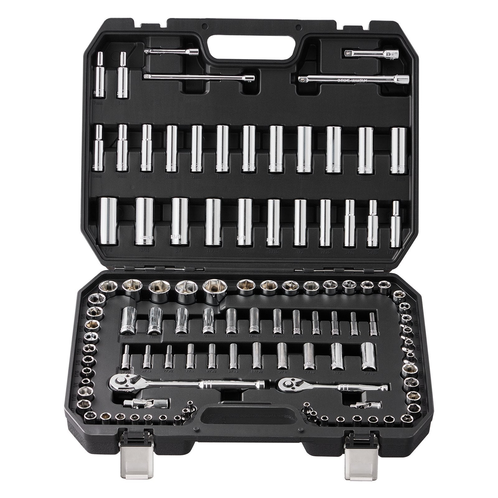 Socket Set, 1/4" and 3/8" Drive Socket and Ratchet Set, 6-Point Socket Opening, 106 Pcs Tool Set SAE and Metric, Deep and Standard Sockets, 5/32-1 in, 5-19 mm, with Accessories, Storage Case