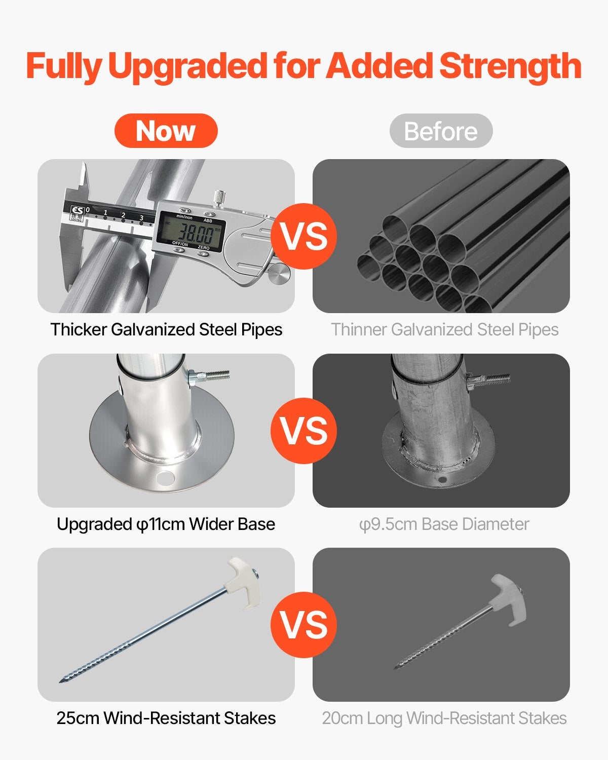 - Heavy-Duty Metal Frame: This large 10x15 ft portable storage shed is built with galvanized steel pipes, with a pipe diameter of 38mm and wall thickness up to 0.7mm. This makes it resistant to cracking, peeling, rusting, and corrosion, ensuring stability and security even in harsh weather conditions.