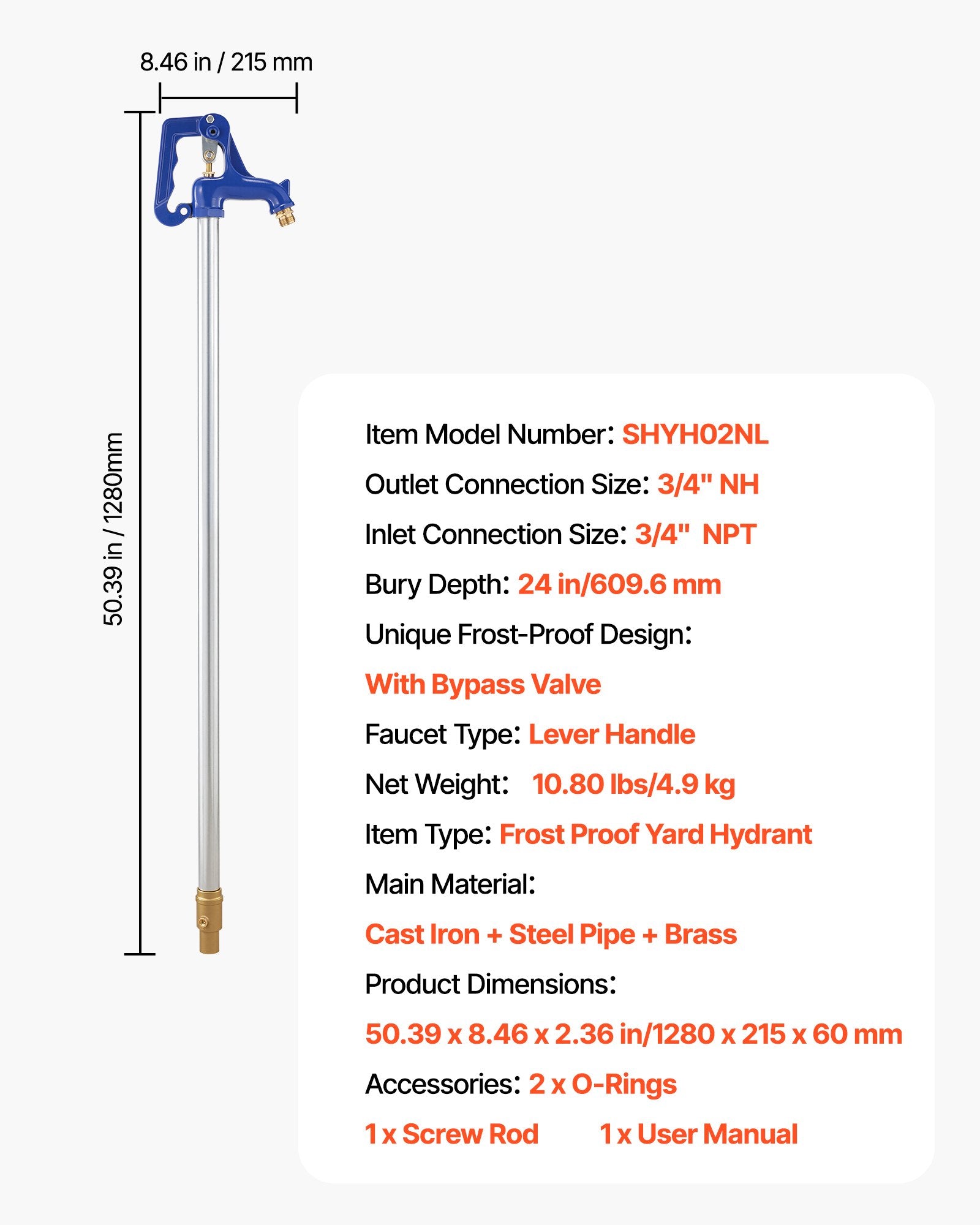 - Keep Water Flowing: VEVOR frost-proof yard hydrant features a 4.2FT (1280mm) overall length and 24" bury depth to effectively protect pipes from freezing. Ideal for garden watering, car washing, farm irrigation and lawn care (Not recommended for drinking)