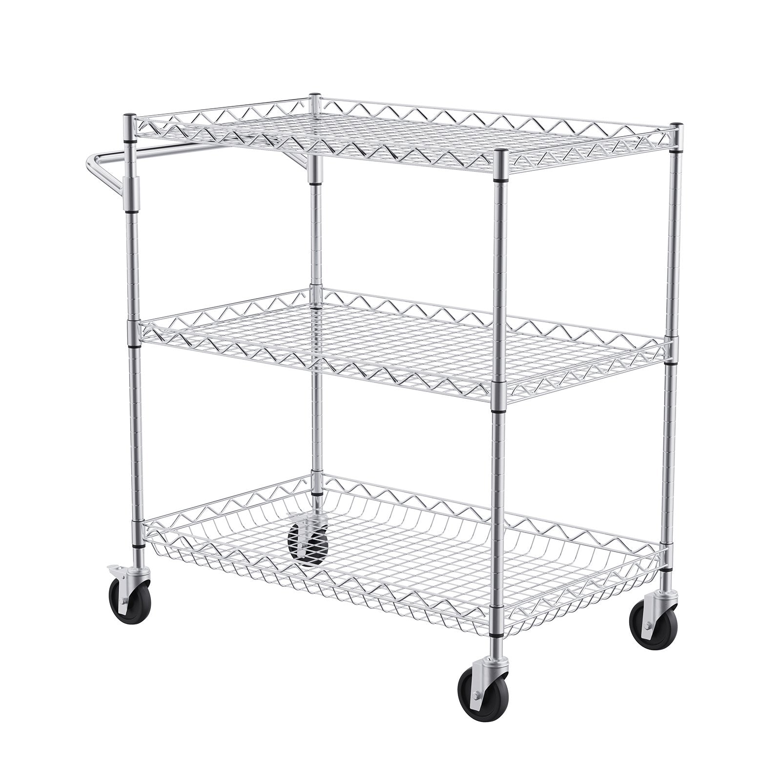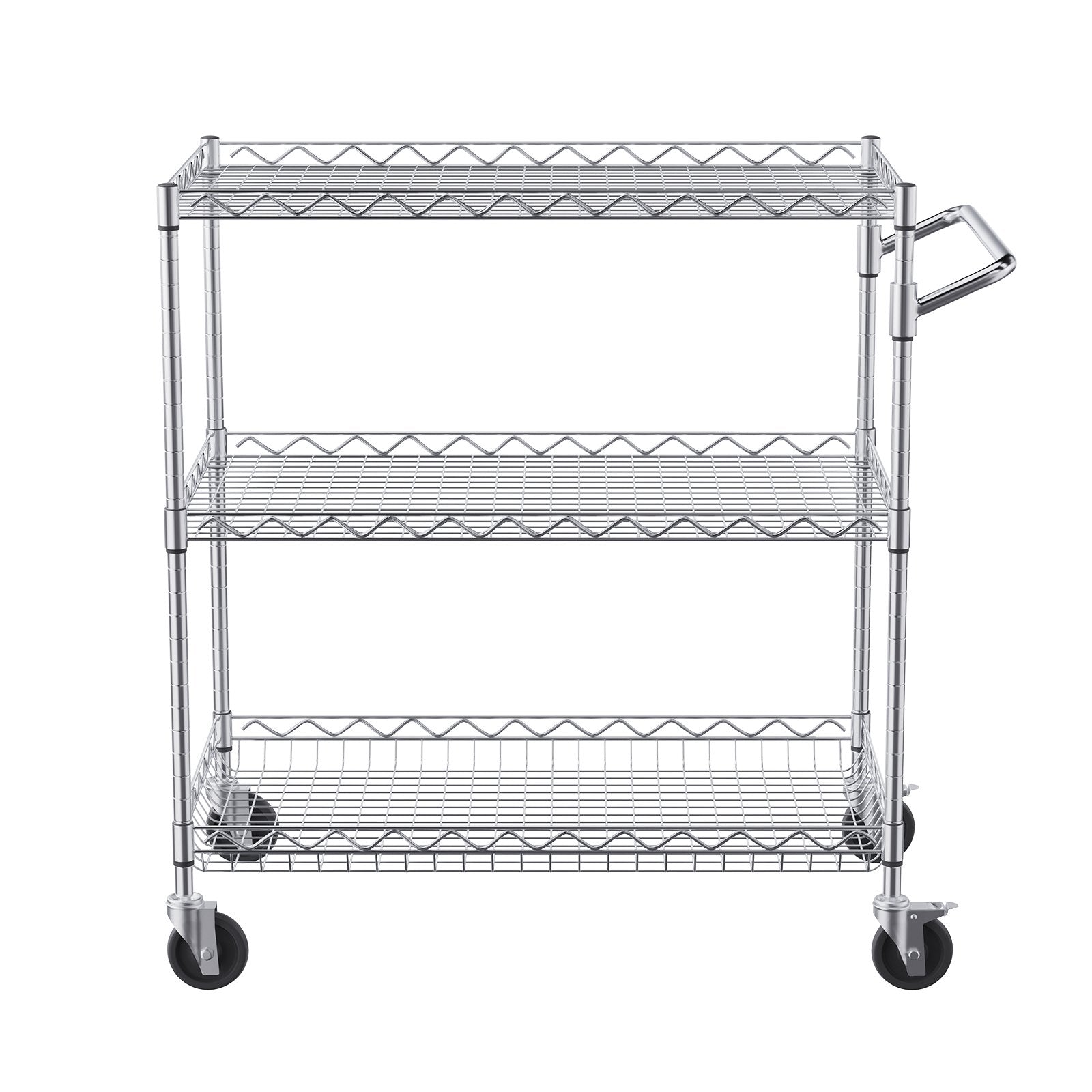 - Load Up and Roll: Are you ready to get more out of your kitchen space? VEVOR's 3-tier utility cart is made of industrial-strength steel, ensuring durability and resistance to deformation. It can carry up to 661 lbs / 300 kg of heavy objects, perfect for storing and transporting large kitchen appliances, heavy machinery, etc. Time to load up and roll!