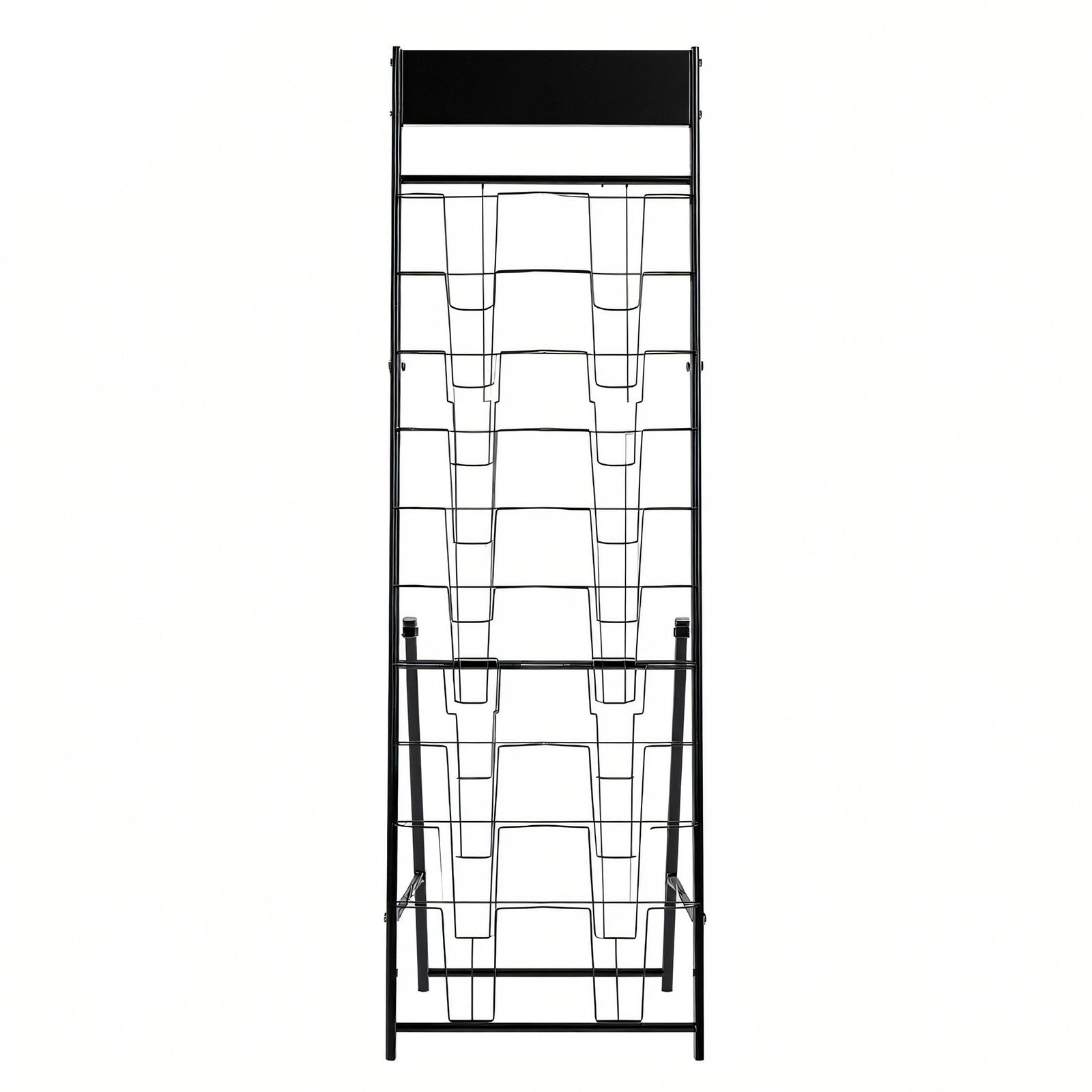 Brochure Display Rack, 20 Pockets Magazine Literature Display Stand, Portable Floor Standing Magazine Rack, Metal Newspaper Catalog Holders for Shop, Exhibitions, Office, Trade Show, Black