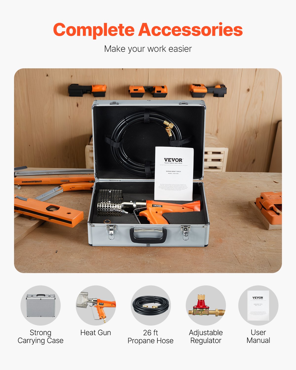 Propane Heat Gun, Up to 187660 BTU Hot Air Gun with Adjustable Regulator, 26 FT Hose, and Hard Carrying Case, Ideal for Boat Plastic Film Shrink Wrapping, Pallet Packaging, Crafting