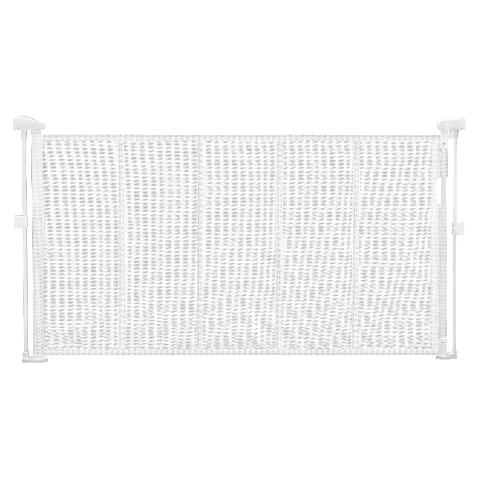 - Retractable Design: This white mesh gate can extend up to 55 inches wide, and the mesh is 34 inches tall, allowing you to adjust the opening size as needed. The retractable design makes it easy to store when not in use, taking up minimal space and keeping your home tidy and spacious