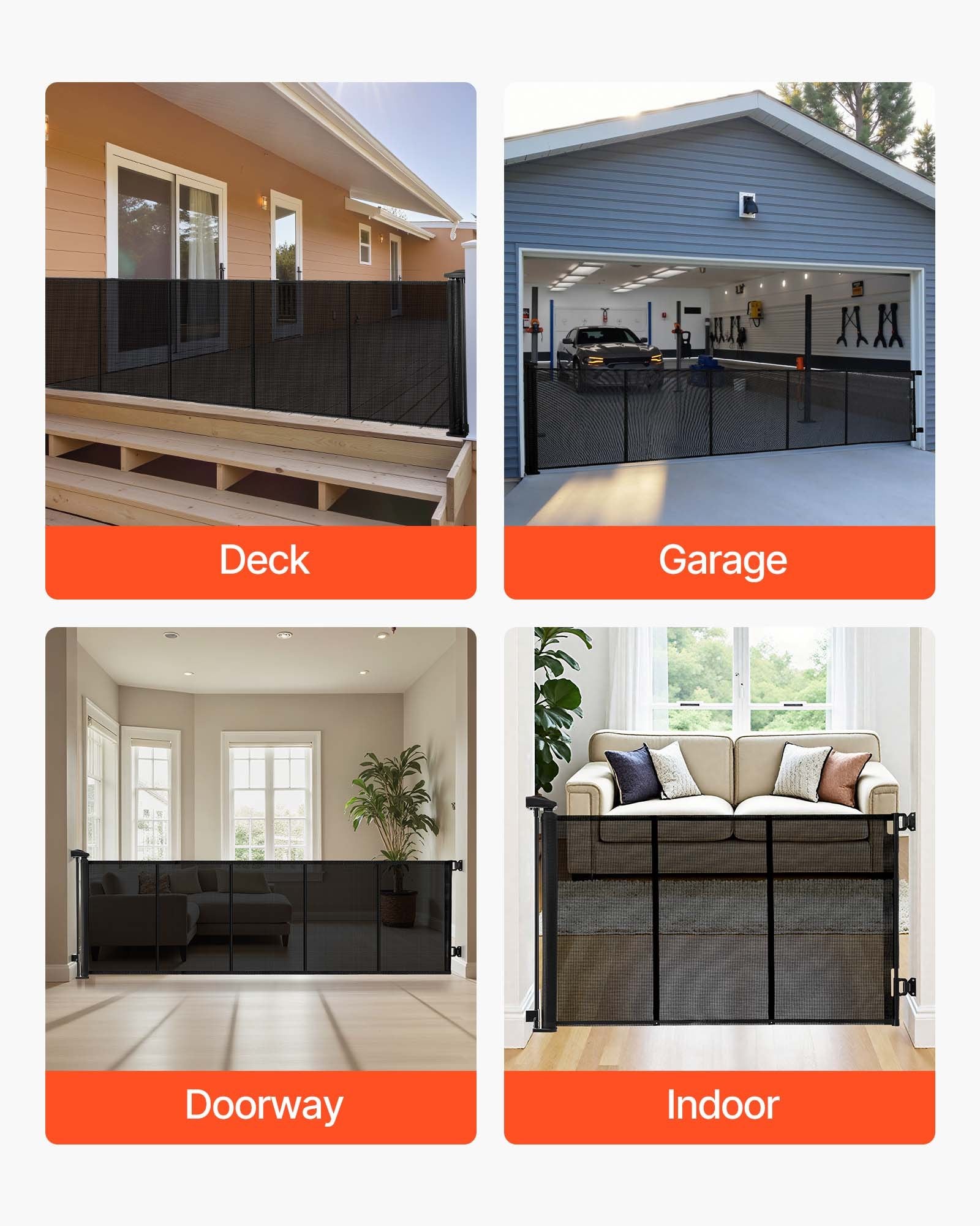 - Secure Separation Without Blocking View: The retractable gate is crafted from high-strength baby-grade PVC mesh that's soft to the touch, breathable, and see-through, so you can monitor your baby or pet from a distance while creating a secure barrier