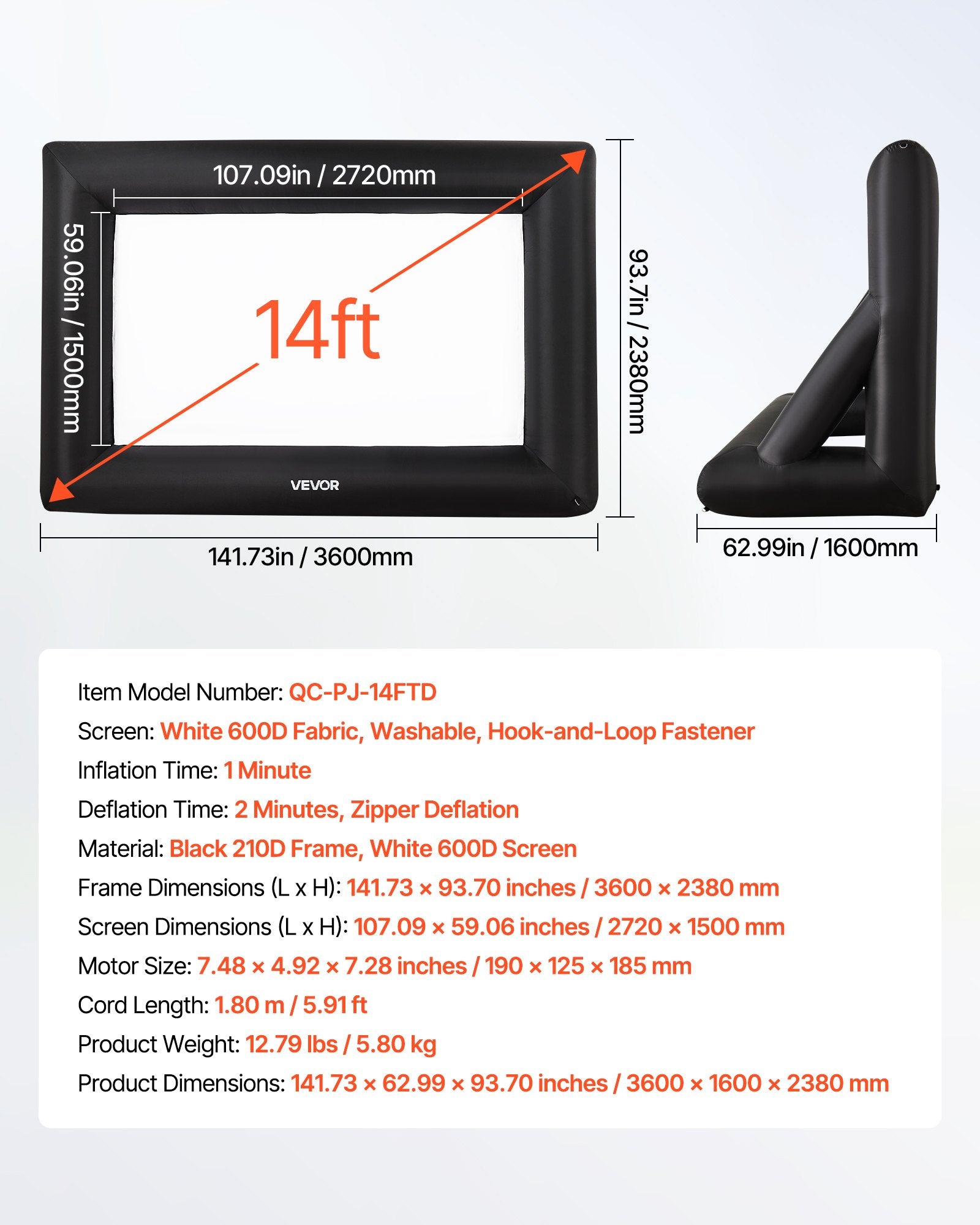 - High-quality Material: This inflatable projector screen for outside uses high-quality Oxford fabric, which can resist creases and is easy to clean, ensuring clear, high-resolution images every time. The screen size is 8.92 x 4.92 ft. Front and rear projection are available with an aspect ratio of 16:9