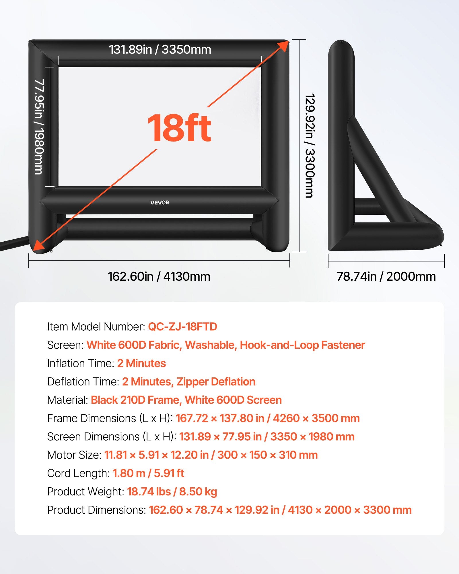 18FT Inflatable Movie Screen, Inflatable Projector Screen with Portable Storage Bag, 16:9 Easy Set Up Movie Projection for Outdoor Backyard, Home Theater, Theme Party