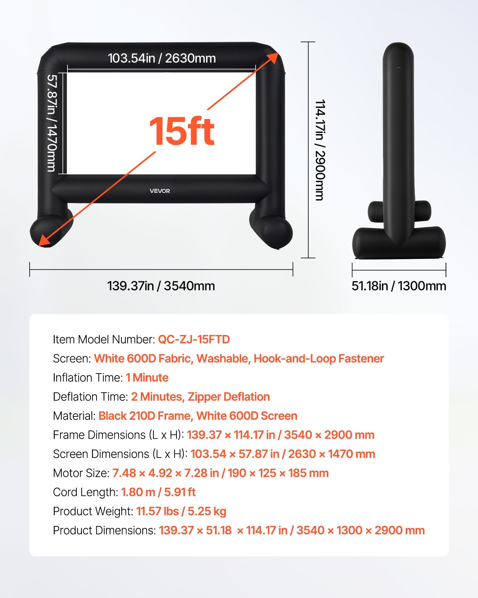 15FT Inflatable Movie Screen, Inflatable Projector Screen with Portable Storage Bag, 16:9 Easy Set Up Movie Projection for Outdoor Backyard, Home Theater, Theme Party