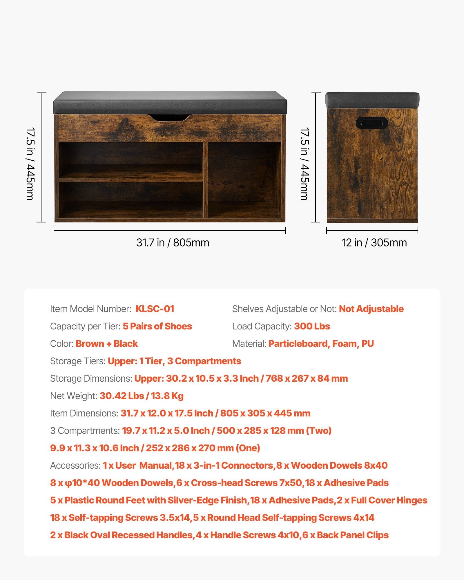- Item Dimensions: 31.7 x 12.0 x 17.5 Inch / 805 x 305 x 445 mm