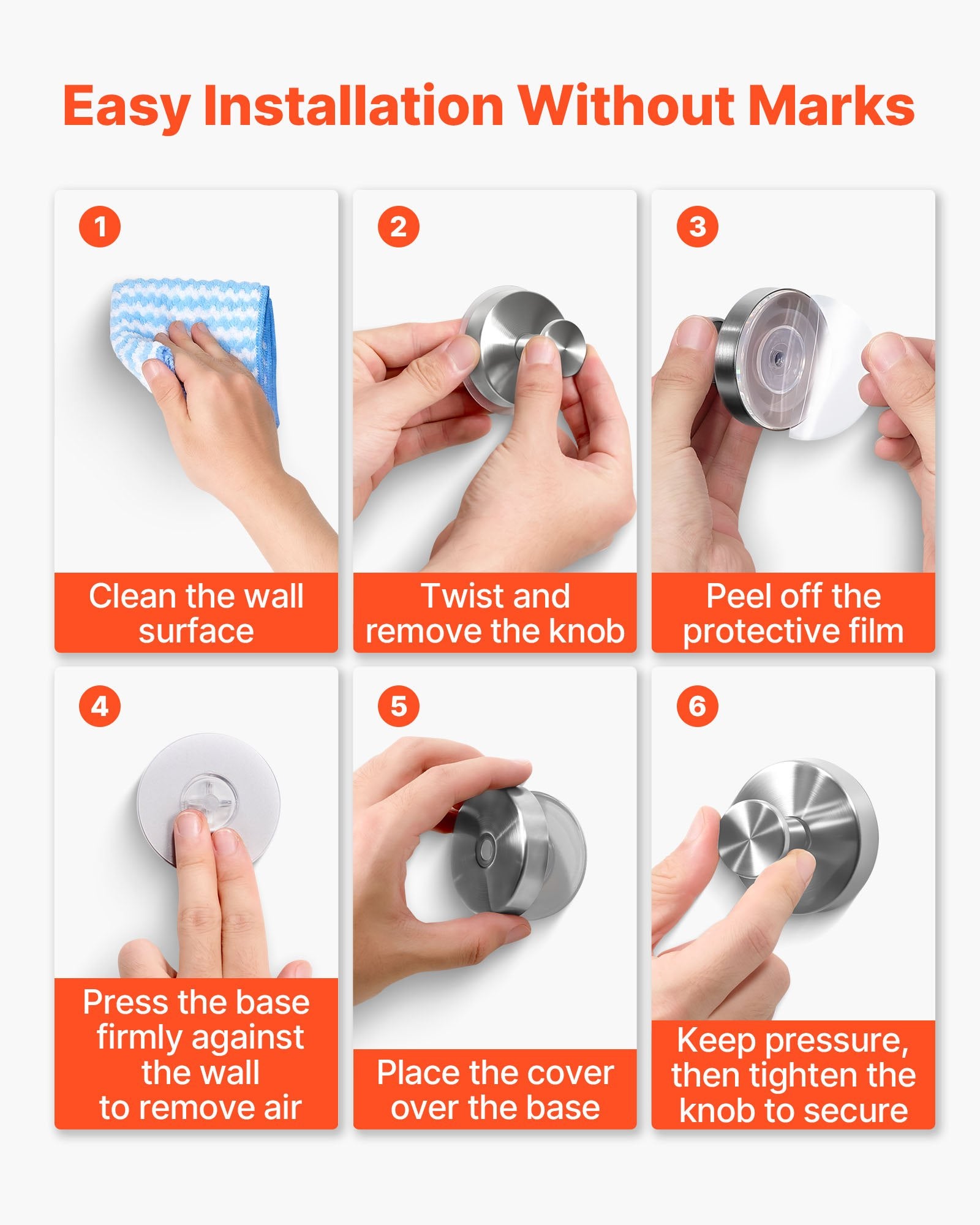 - Drill-Free Installation: The suction towel holder offers suction and adhesive mounting options. Both methods are quick and tool-free, requiring only a few steps. Installation and removal leave no marks, keeping walls intact and damage-free.