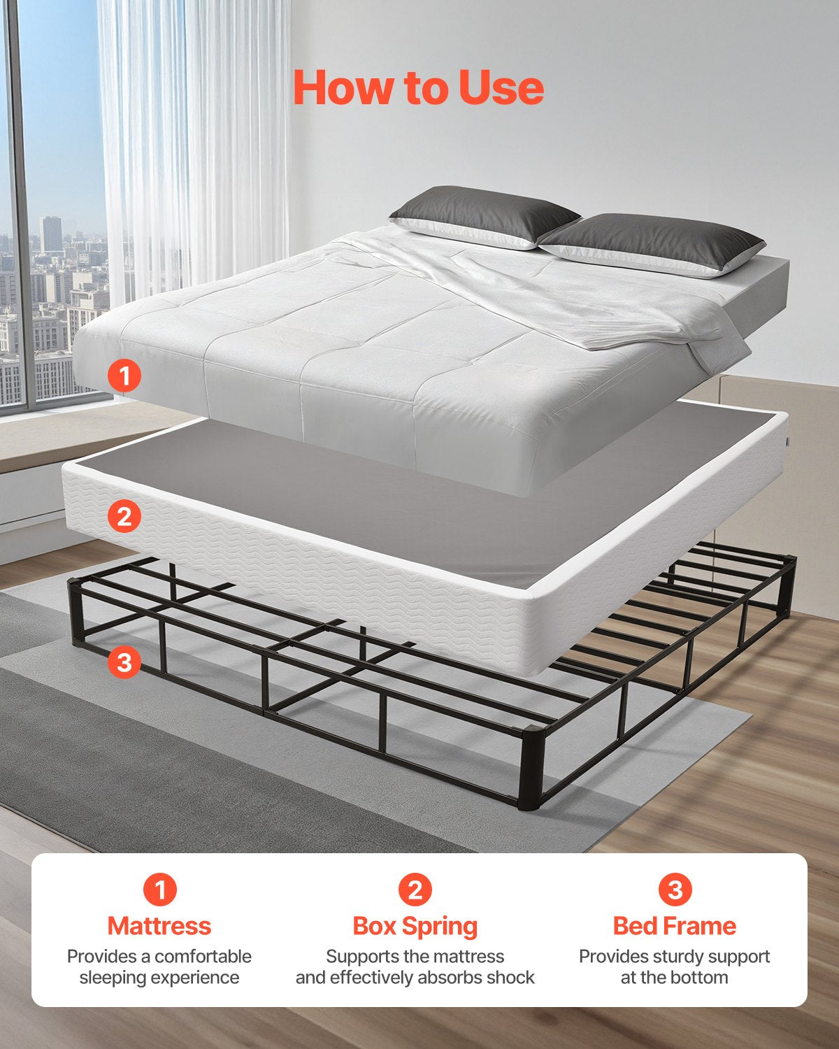 - Sturdy, Stable, and Durable: Constructed with a thick and solid steel frame, our box spring supports up to 3500 lbs, providing excellent support for your sleep. The thickened design ensures long-lasting durability.