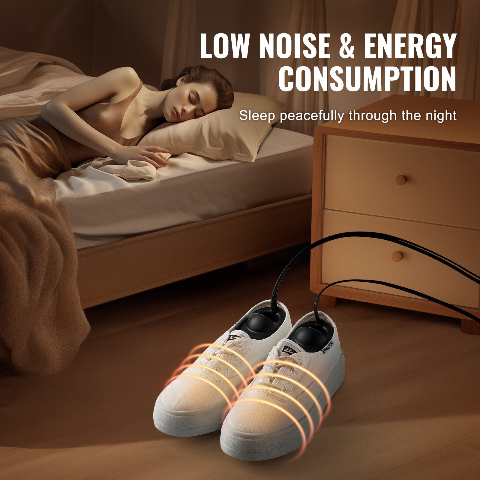 - Low Noise & Energy Consumption: This shoe dryer/warmer has a power of only 6W, which is much less than a standard light bulb; it also operates very quietly, making it suitable for use at night without disturbing your rest. During use, make sure to check if your shoes are dry and turn off the power and remove the shoes when drying is complete.
