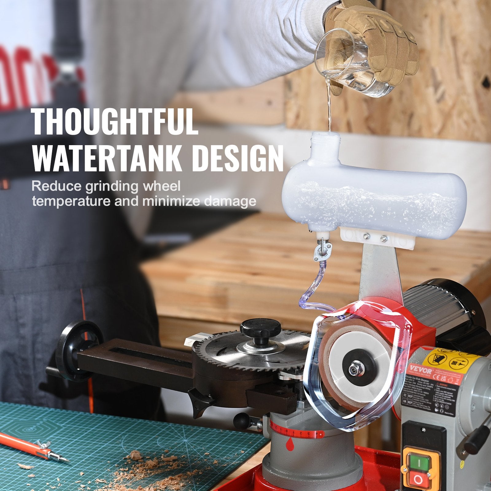 - Sharper Blades, Smoother Cuts: Say goodbye to dull blades! VEVOR 370W powerful water injection circular saw blade sharpener, running at 3600RPM high speed, efficiently sharpens your saw blades to their former sharpness, leaving them razor-sharp, resilient, and burr-free.