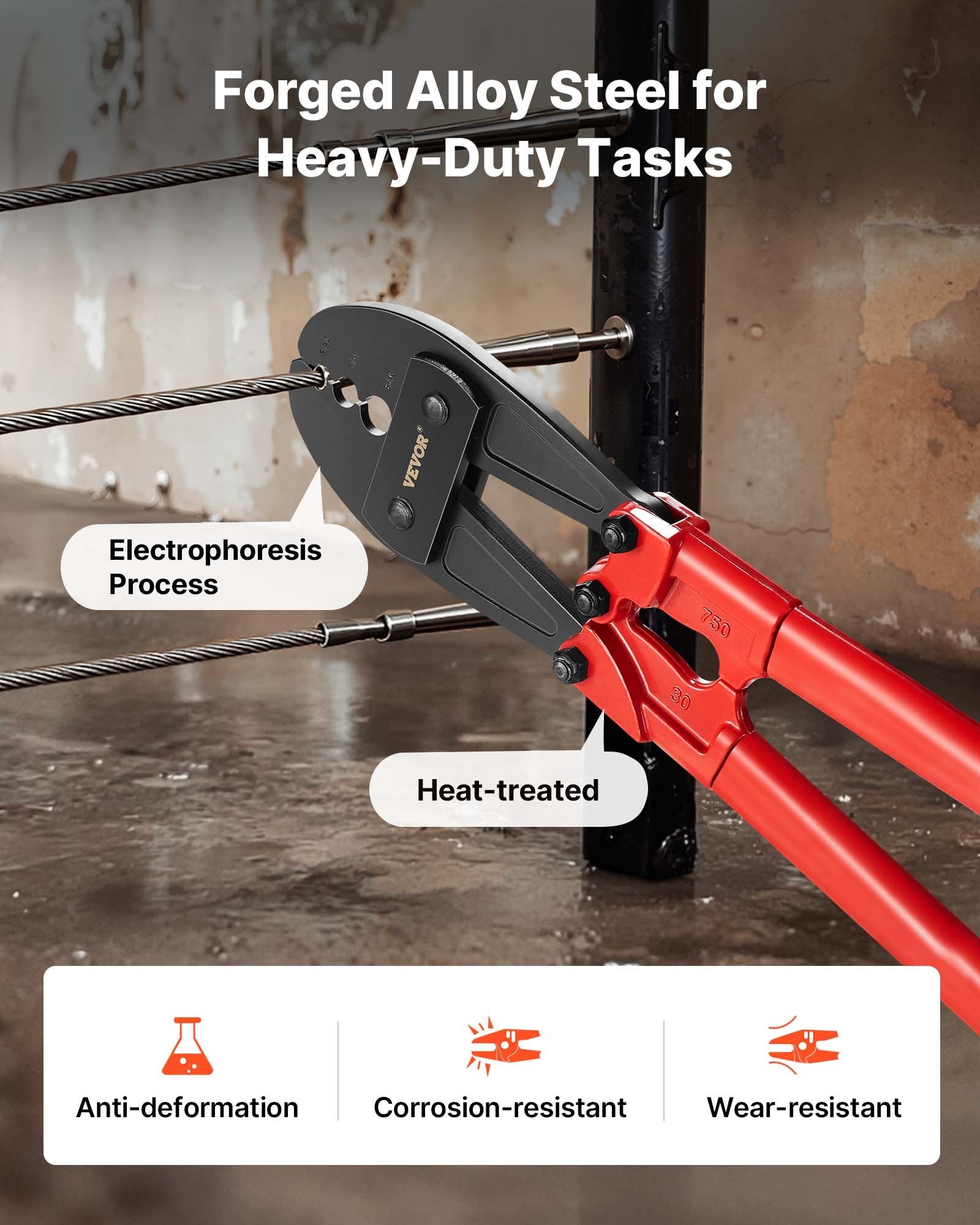 - Easy Operation: The crimping operation can be finished in several steps. You just put the wire or rope into the hole and press it. The 30-inch length tool is lightweight and portable. You can use it even in a narrow space.
