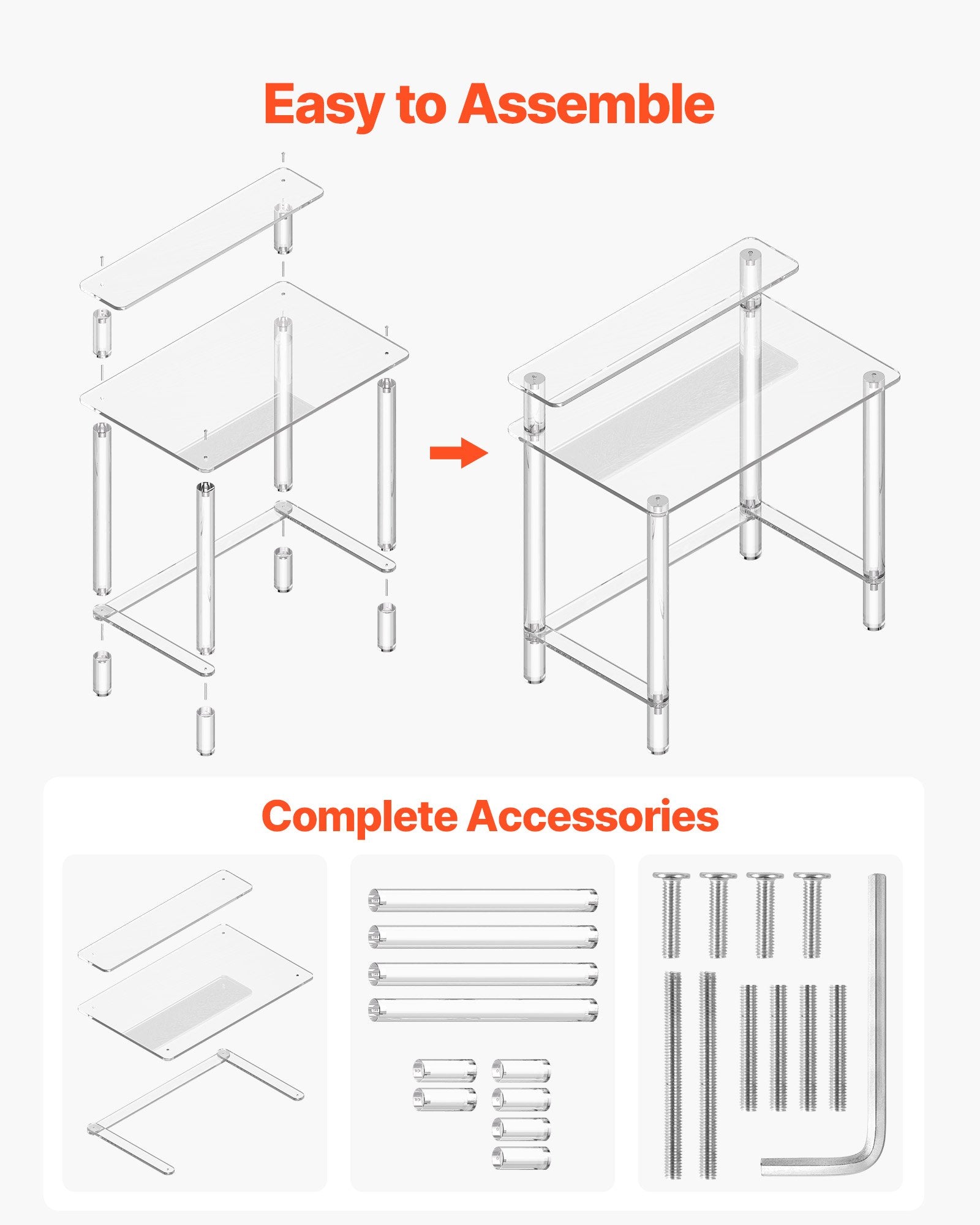 - Spacious Storage: The transparent tabletop of this acrylic side table provides a comfortable height and vertical 2-tier space for laptops, books, and decor. It provides ample room for work and study, while the clear surface makes it easy to find items