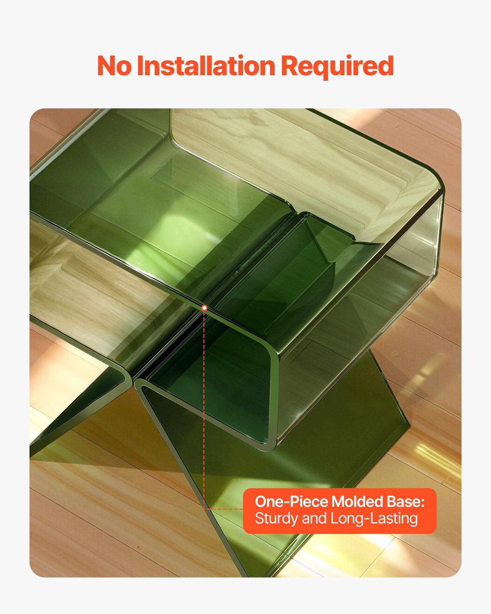 - Dual Storage Space: This acrylic desk features spacious 2-tier storage for small items and decor pieces. The transparent tabletop provides an unobstructed view, making it easy to find what you need—ideal as a side table, small coffee table, or nightstand
