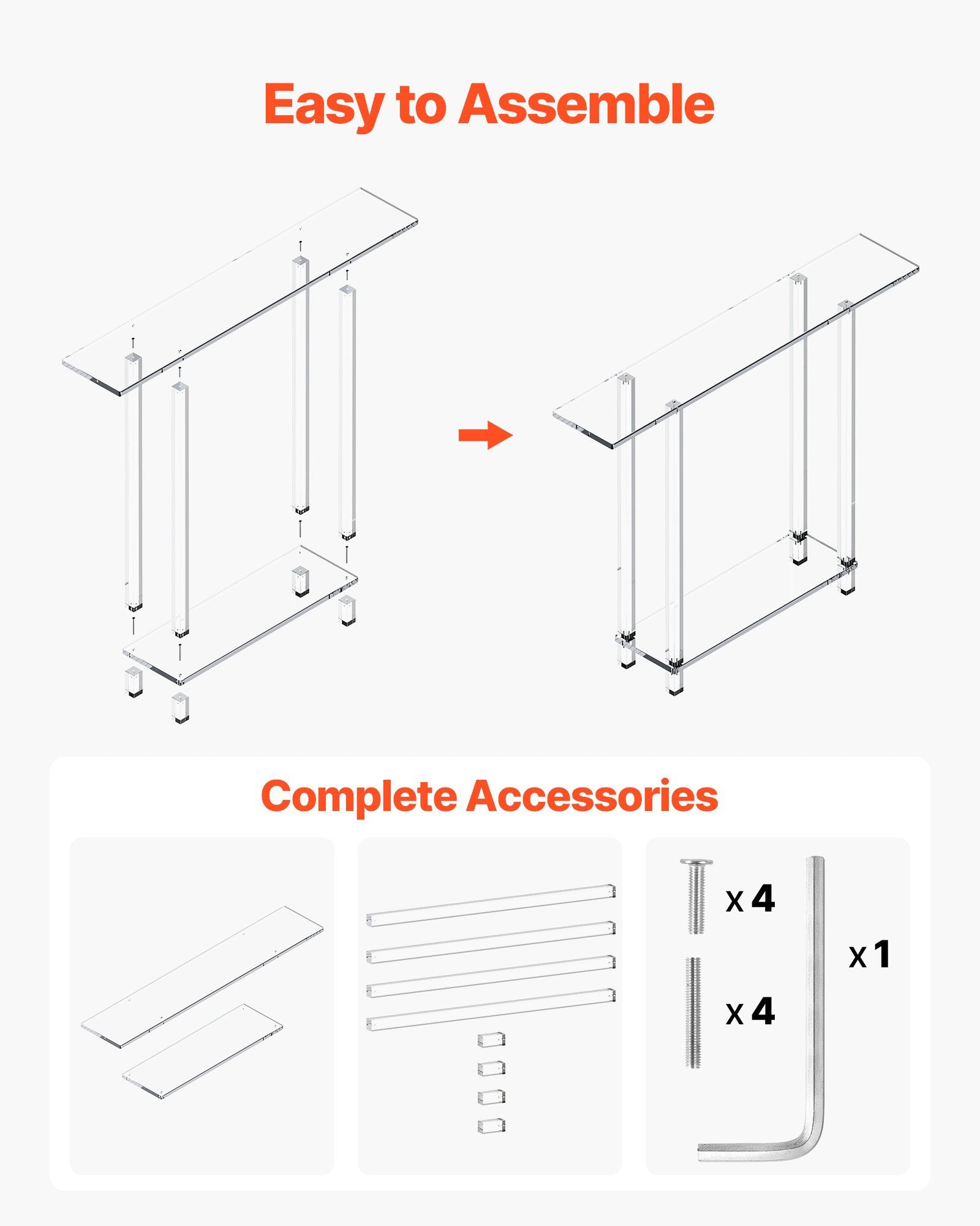 - Dual Storage Space: This acrylic table provides spacious 2-tier storage for laptops, books, documents, and décor. The transparent tabletop provides an unobstructed view, making it easy to find what you need. Ideal as an entryway, sofa, or console table