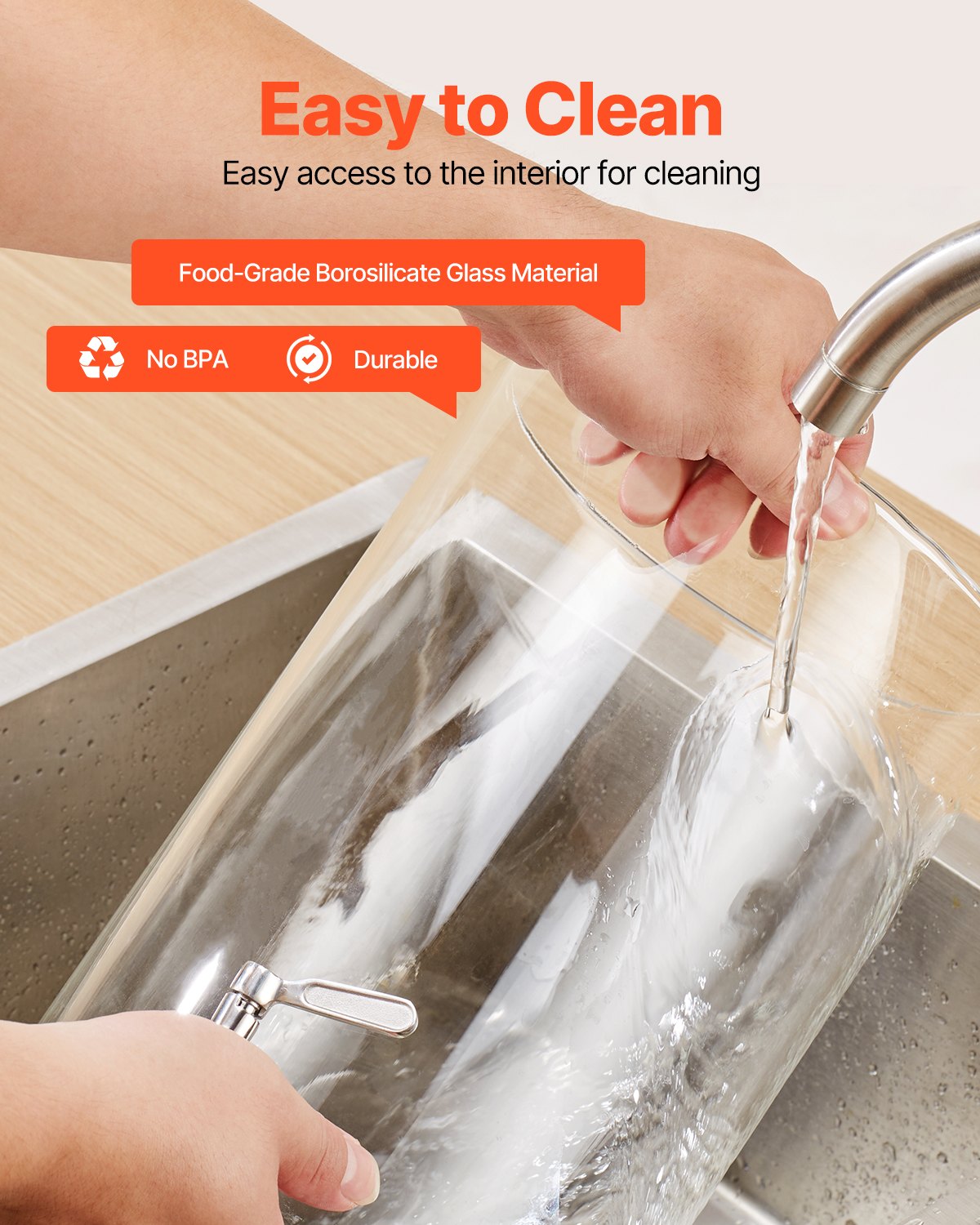 - Easy to Clean: Made from food-grade borosilicate glass, the juice dispenser for parties is stain-resistant, durable, and dishwasher-safe. The removable lid and wide opening make cleaning the interior effortless