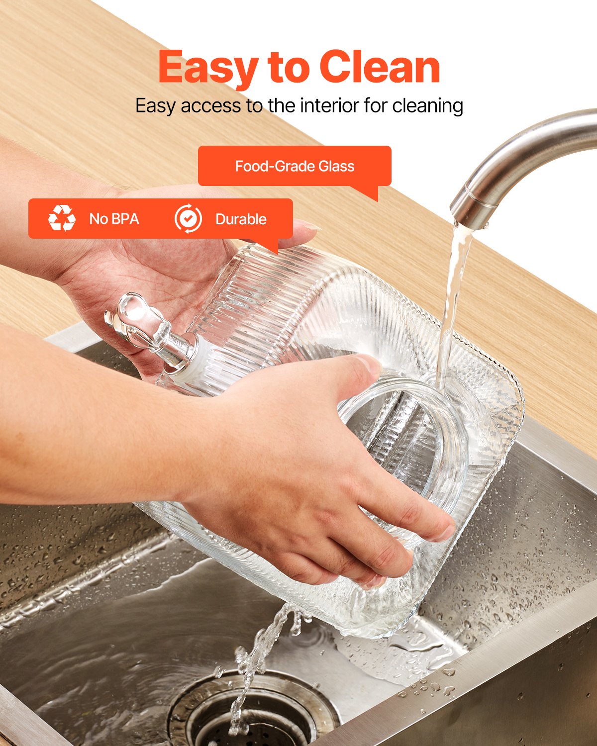 - Easy to Clean: Made from food-grade glass, the juice dispenser for parties is stain-resistant, durable, and dishwasher-safe. The removable lid and wide opening make cleaning the interior effortless