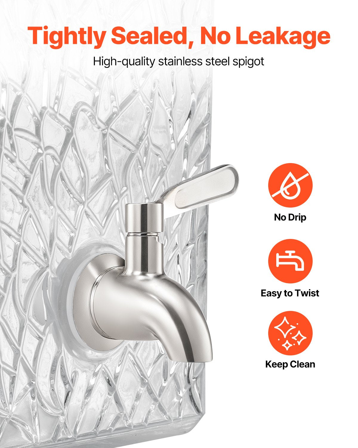 - No Drip Spigot: Equipped with a tightly sealed stainless steel spigot, the drink dispenser is convenient for dispensing without leakage, so you won't have to worry about cleaning spilled drinks. It helps keep your drink station clean and aesthetic