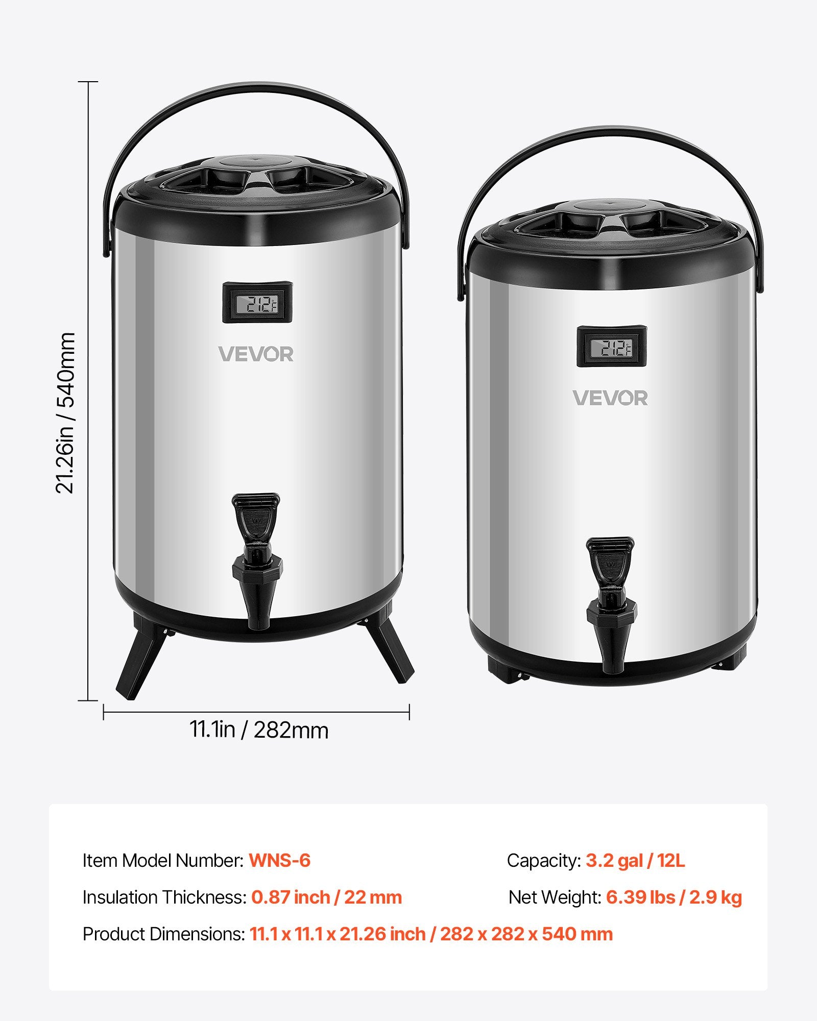 - Real-Time Temperature Display: Built-in temperature display lets you monitor drinks in real-time, ensuring perfect hot or cold serving. Large capacity suits commercial use, making this insulated beverage dispenser ideal for busy beverage stations