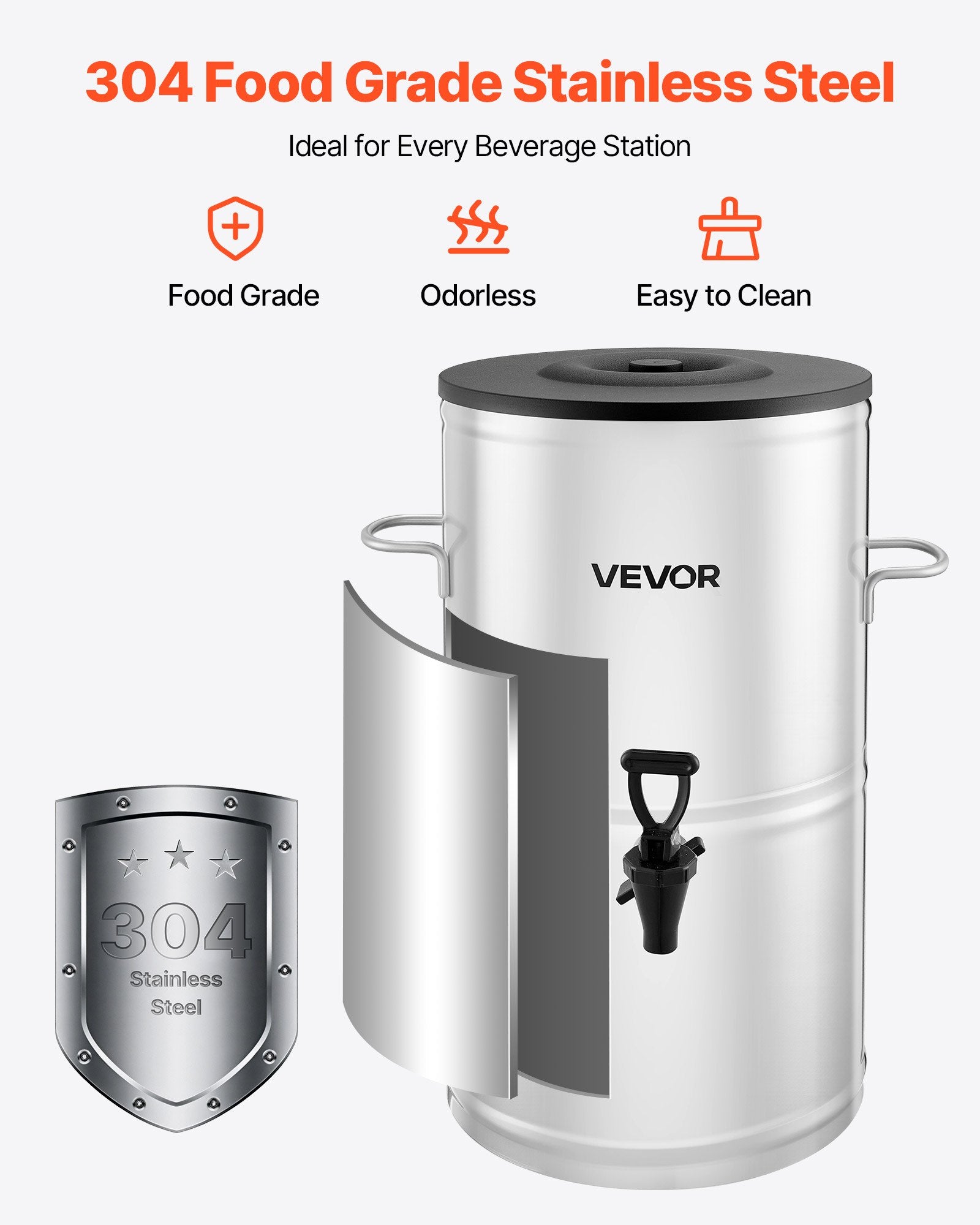 Ice Tea Dispenser, 4 Gal/15L 304 Stainless Steel Beverage Dispenser with Spigot & Handle, Suitable for Hot and Cold Drinks, for Iced Tea Coffee Water in Cafes & Restaurants