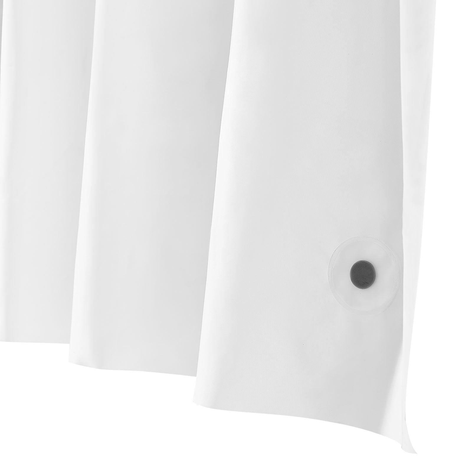 - Magnetic Function: This weighted shower curtain includes magnets along the bottom hem to improve drape and reduce splashing. It can also attach to water barriers or metal bathtubs, offering better water control in the shower area