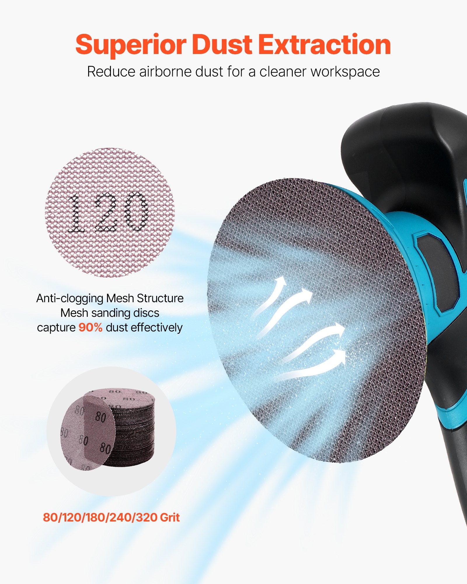 - Superior Dust Extraction: VEVOR 5-inch 50PCS 120 Grit mesh abrasive sanding discs adopt a unique anti-clogging mesh structure that quickly captures dust and prevents debris buildup. It effectively avoids clogging, ensures efficient sanding, and creates a virtually dust-free, cleaner workspace