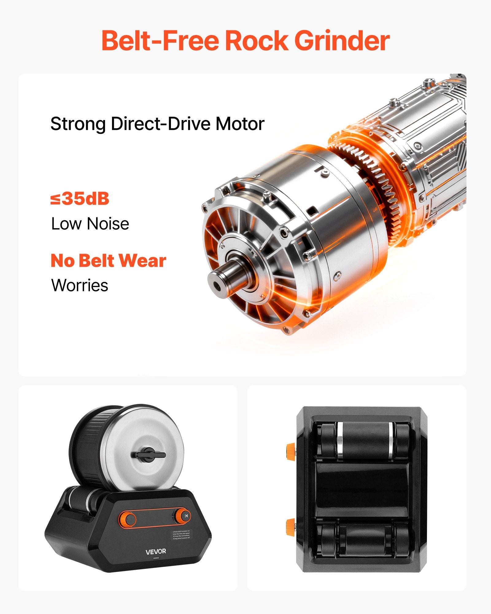 - Belt-Free Direct-Drive Motor: This rock tumbler kit uses a low-voltage direct-drive motor for smoother, more efficient polishing without belt transmission, eliminating belt wear and replacement while reducing maintenance costs. It runs at ≤35 dB, letting you enjoy a quiet and comfortable creative experience