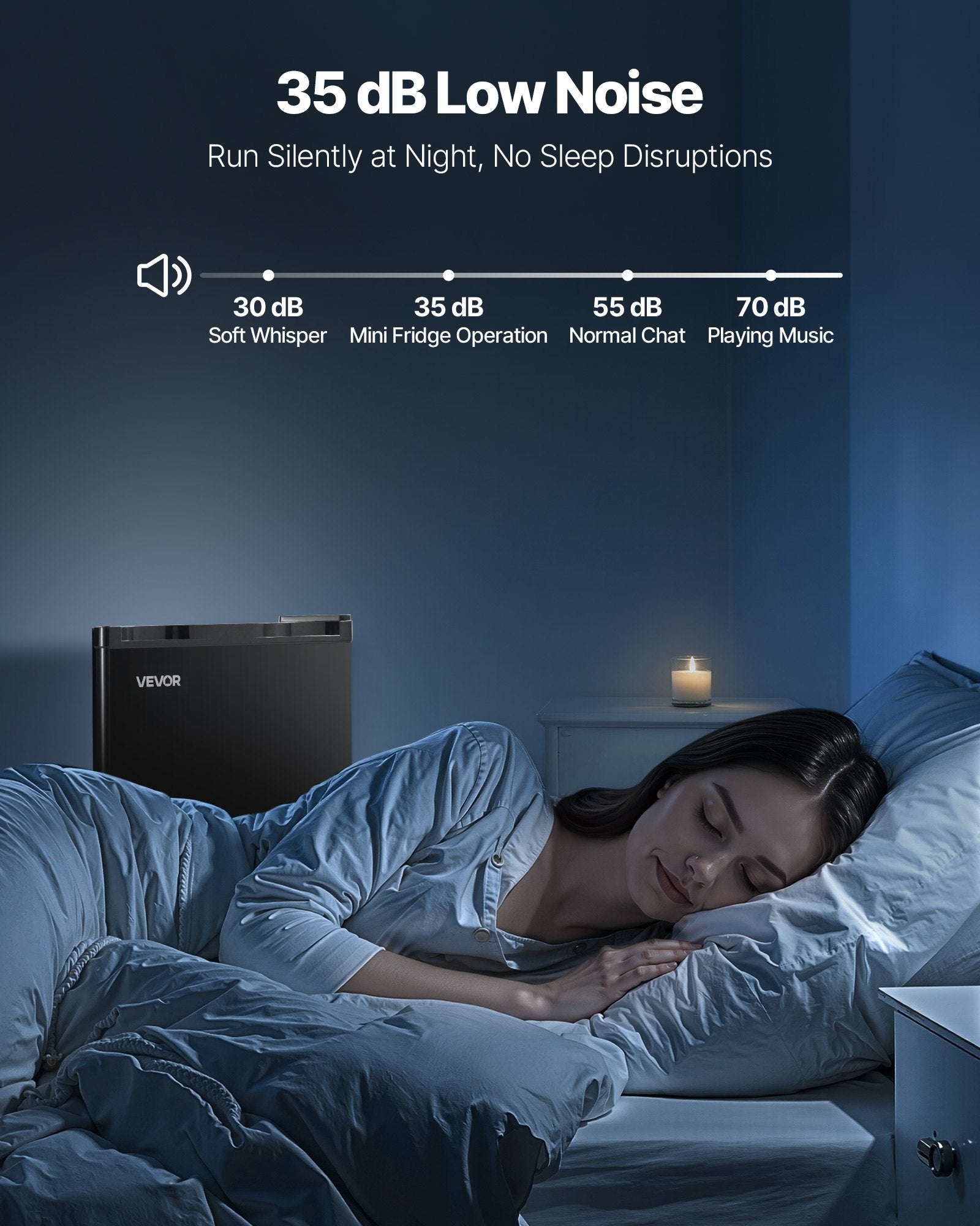 - Low Noise, Low Energy: With a noise level of ≤ 35 dB, our mini refrigerator is ideal for bedrooms, study corners, or quiet offices. Plus, it is energy-efficient, keeping your food fresh with low electric cost