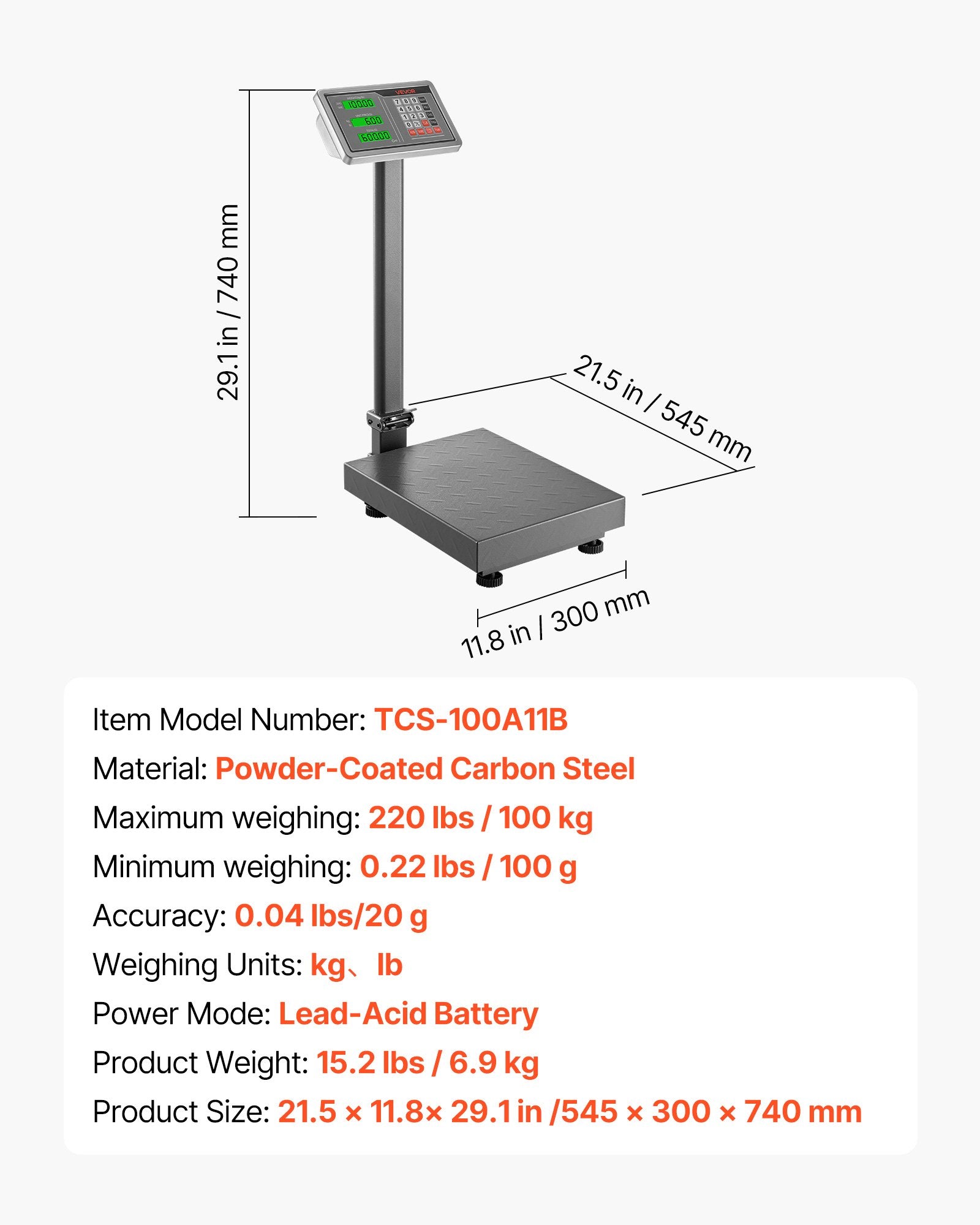 Computing Digital Platform Scale, 220 lbs Load, 0.04 lbs Accuracy, Electronic Floor Scale with LB/KG, Tare, Price Calculator, AC/DC Power Supply, Fit for Luggage, Shipping, Packages, Postage