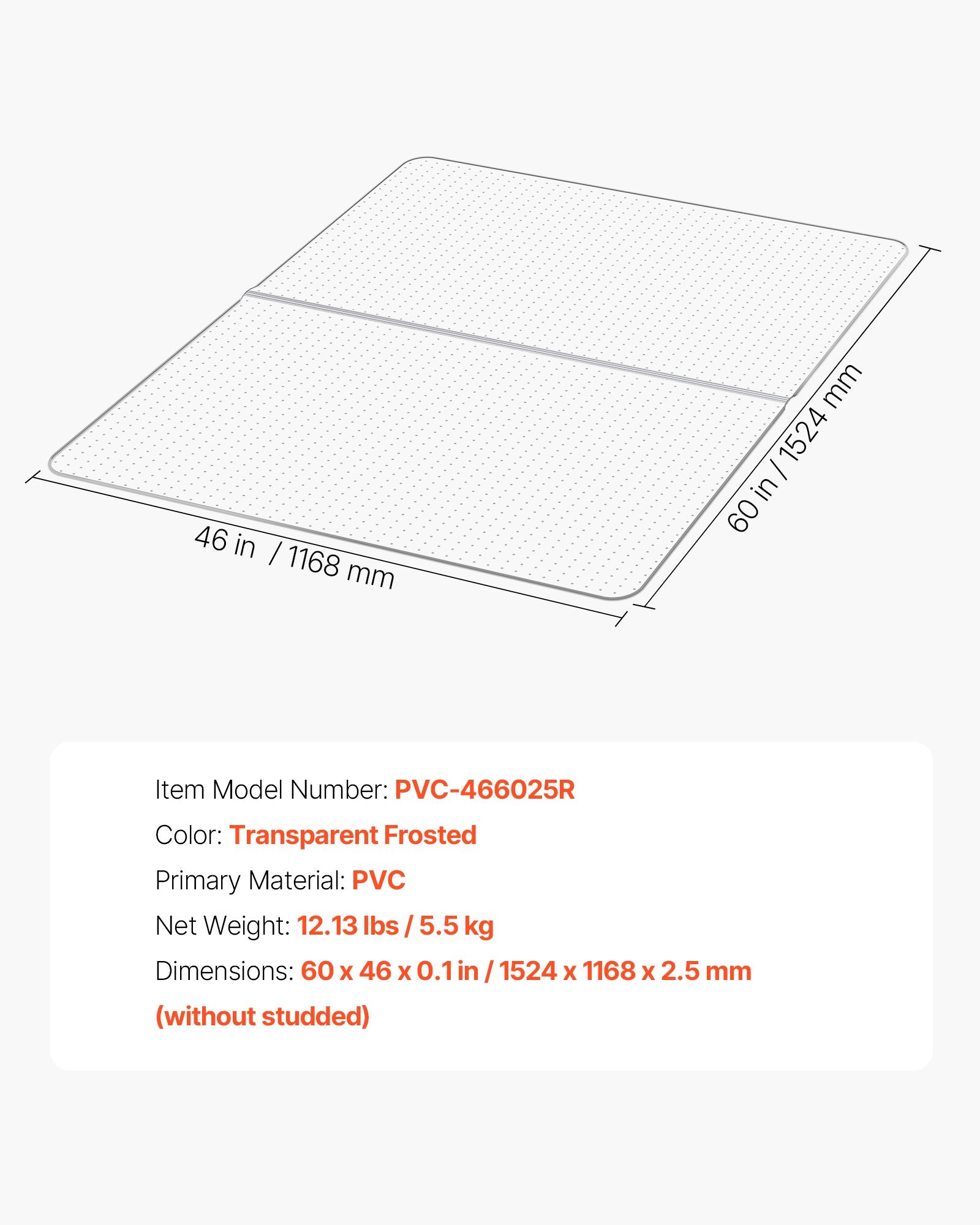 Chair Mat, 60 x 46-inch Office Chair Mat for Low Pile Carpeted Floors, Clear Floor Protector Rug with Studded, Non-Slip & Easy to Clean, Smooth Glide Under Desk Rug for Home Office (Rectangular)