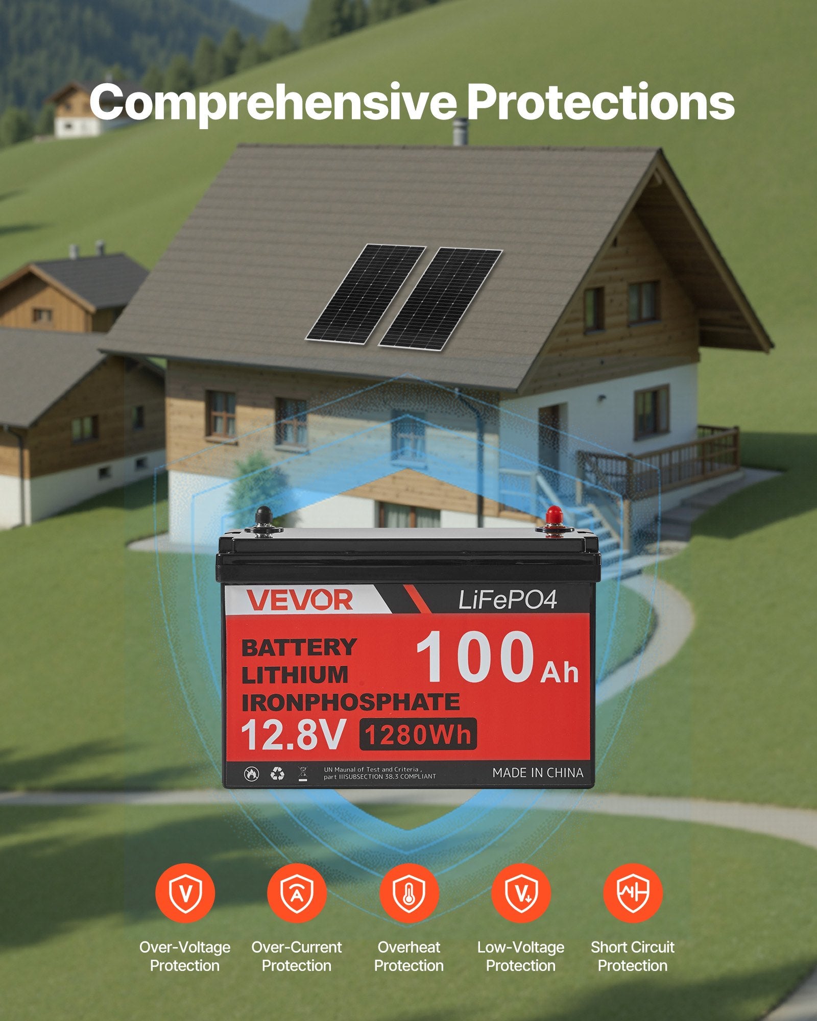 - High-Efficiency Solar System: Equipped with 2pcs 200W solar panels and a 12.8V 100Ah LiFePO₄ battery, this complete solar power kit delivers up to 1600Wh/day output with 1280Wh battery storage. Perfect for RVs, boats, homes, camping and more, it provides reliable power support for various household devices