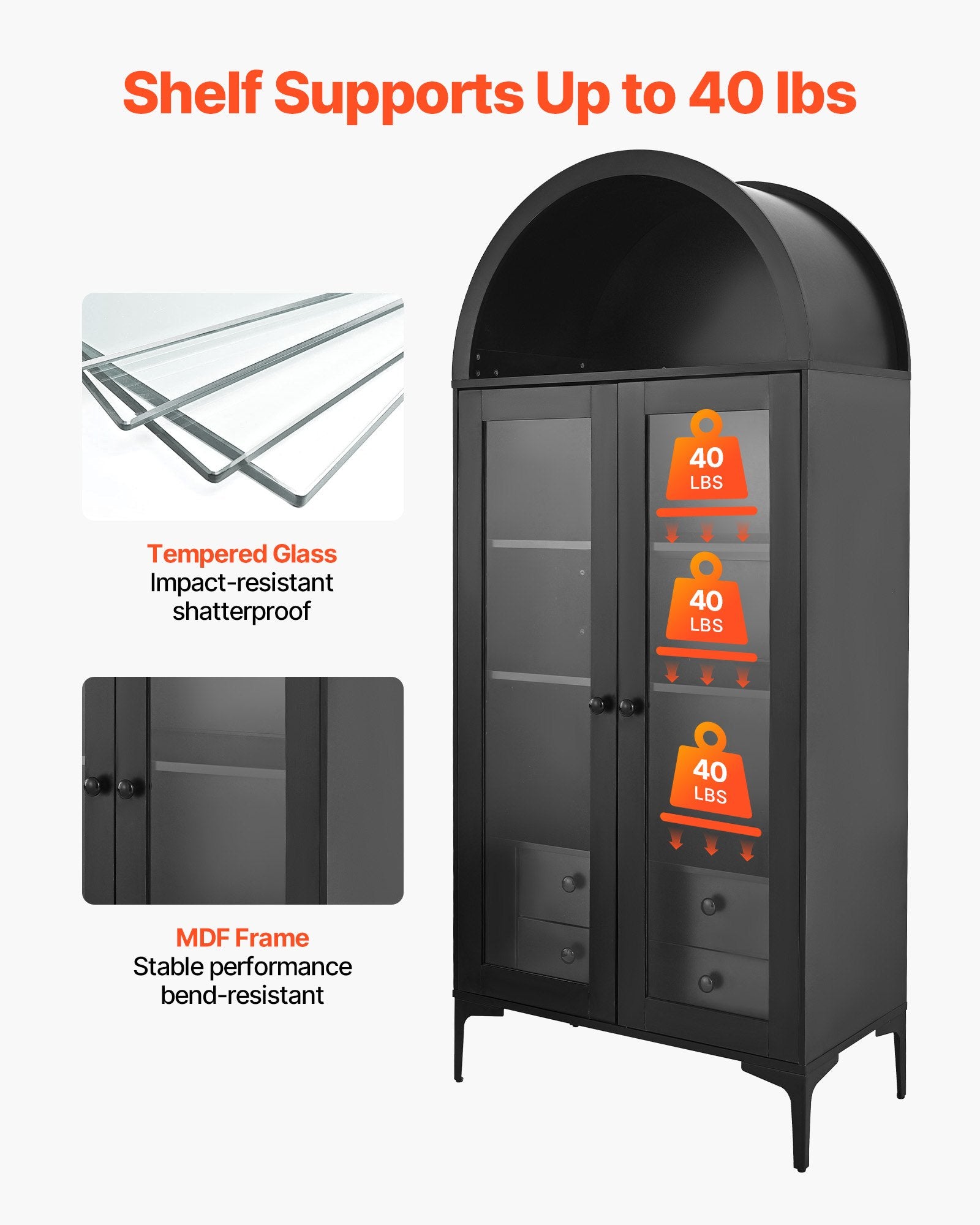 Arched Display Cabinet with Glass Doors, 70 in Tall Curio Cabinet, 4-Tier Display Case with 2 Adjustable Shelves, Bookcase Bookshelf for Collectibles Storage Bedroom Living Room Office