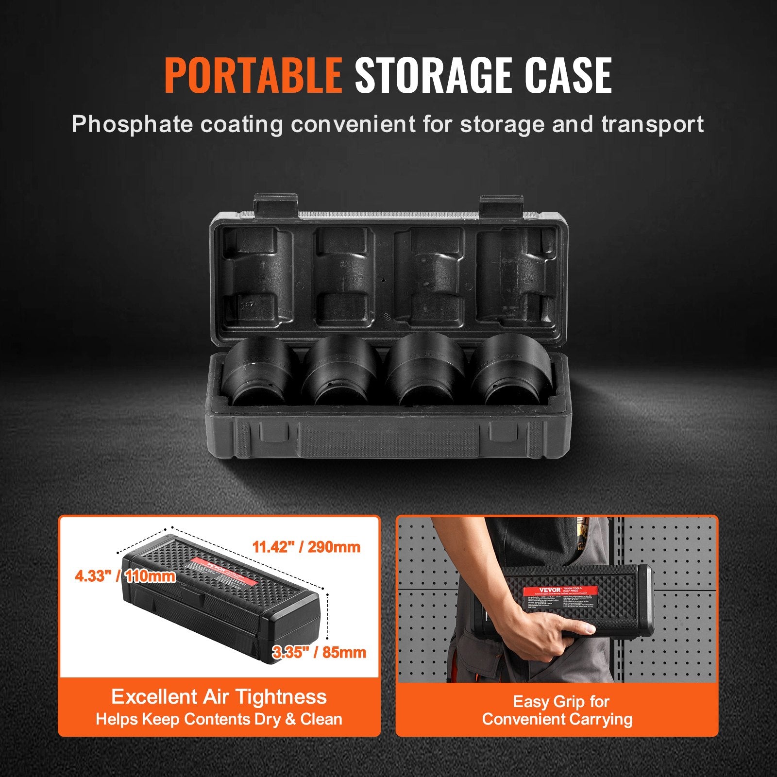 - Portable Storage Case: All impact sockets are neatly organized in a sturdy storage case for convenient access and transport. The case is airtight to keep your tools dry and clean, and it includes a handle for easy carrying.