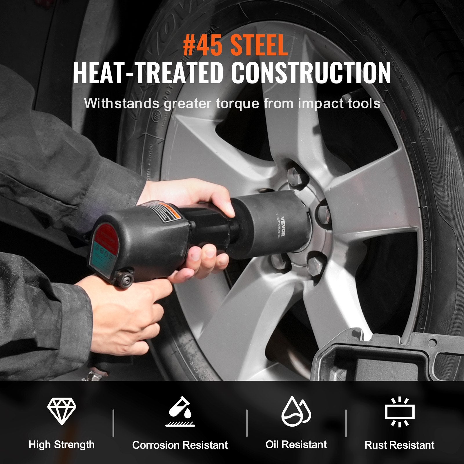 - Impact-Resistant & Corrosion-Resistant: Made from heat-treated CR-MO steel, the impact socket set withstands high torque from impact tools. The blackened surface treatment enhances corrosion resistance, making them rust-proof, oil-resistant, dirt-resistant, and highly durable for long-term use in auto repair.