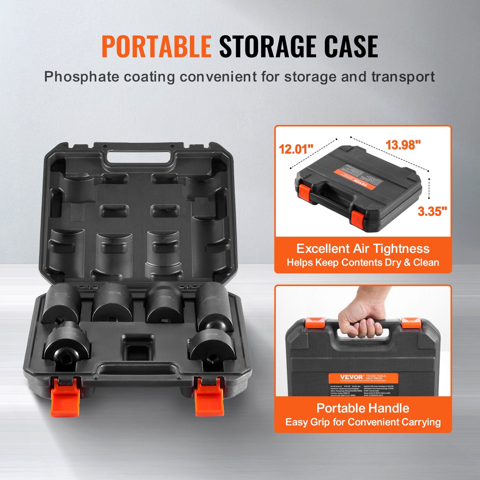 Spindle Nut Socket Tool Kit, 1/2 inch Drive 6 Piece Axle Hub Nut Socket Set, for Toyota, Ford, 4WD Vehicles and GM Vehicles, with Storage Case, Axle Spindle Nut Retainers Remover