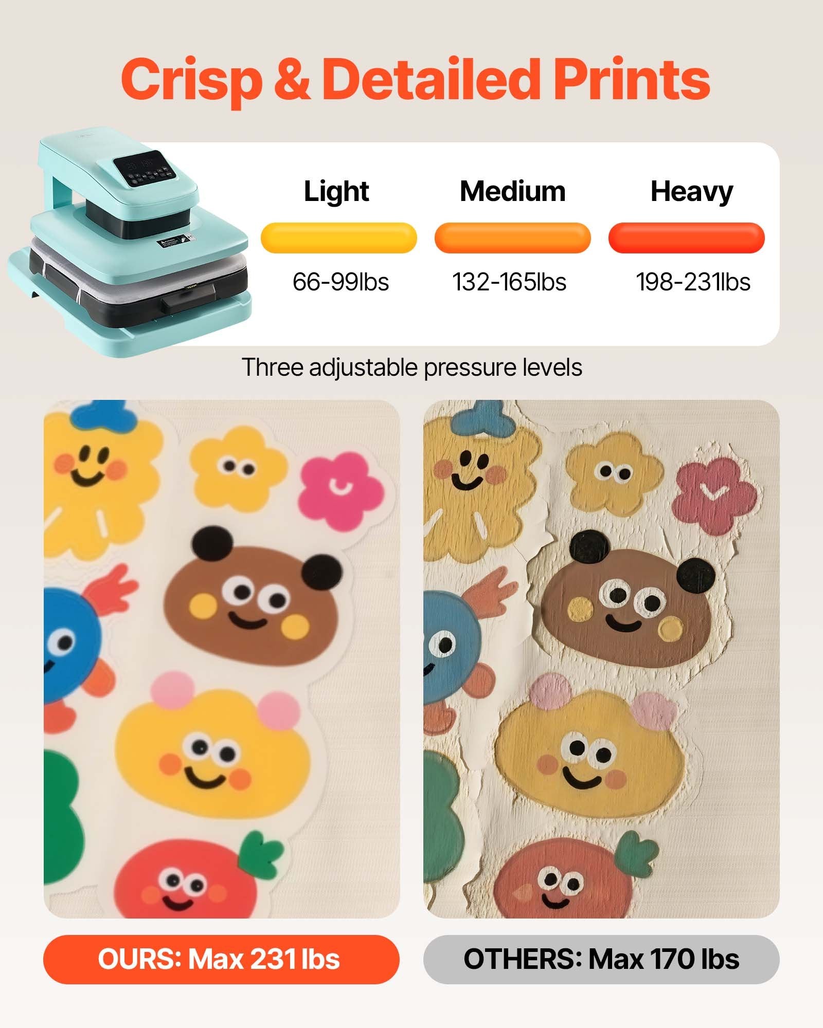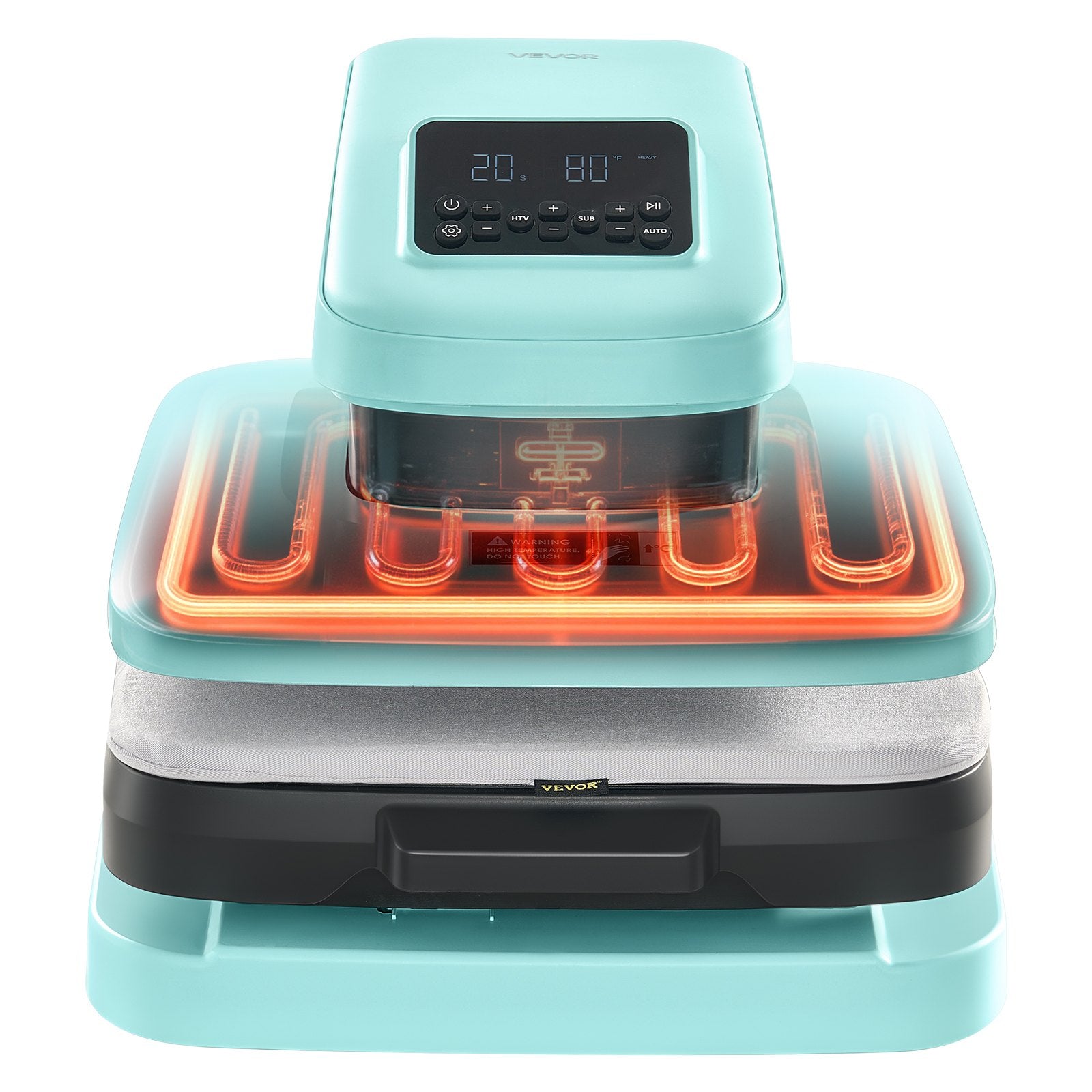 - Rapid Dual Heating: This automatic heat press delivers up to 231 lbs of pressure for lasting transfers on fabric, wood, and ceramics. Dual-tube heating ensures fast and even heat across the 15 x 15 in plate, with 2.17 in clearance for thicker items