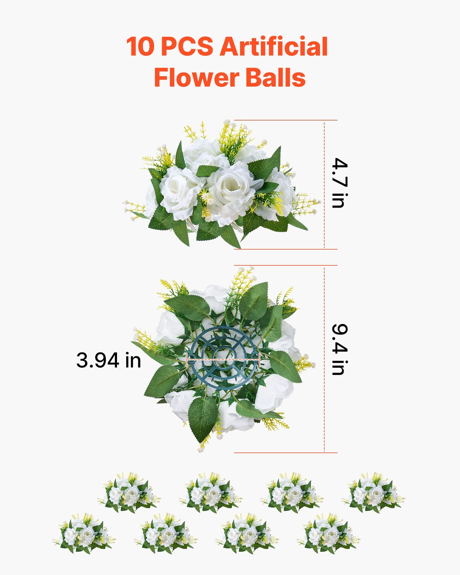 Flower Balls Arrangement Bouquet 10 PCS, 9.5-Inch Diameter Artificial Flower Balls Wedding Rose Centerpieces, Faux Flowers Arrangements for Wedding Centerpiece Home Table Decorations, White
