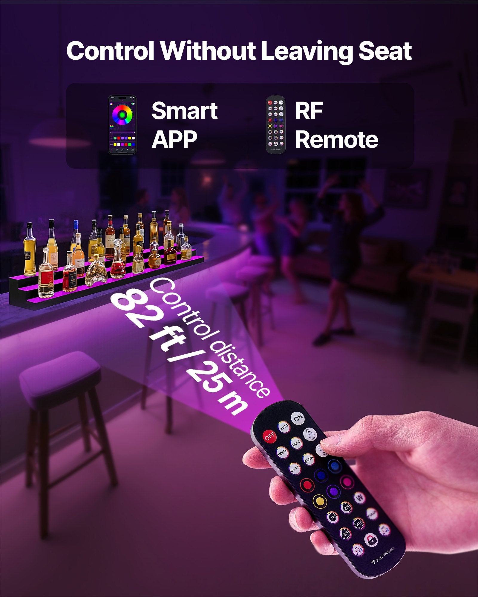 - Multiple Control Methods: Supports dual distant wireless control via RF remote (up to 82ft) & smart app (up to 33ft), unlocking brightness, speed, timing, and music-sync lighting controls for personalized ambiance