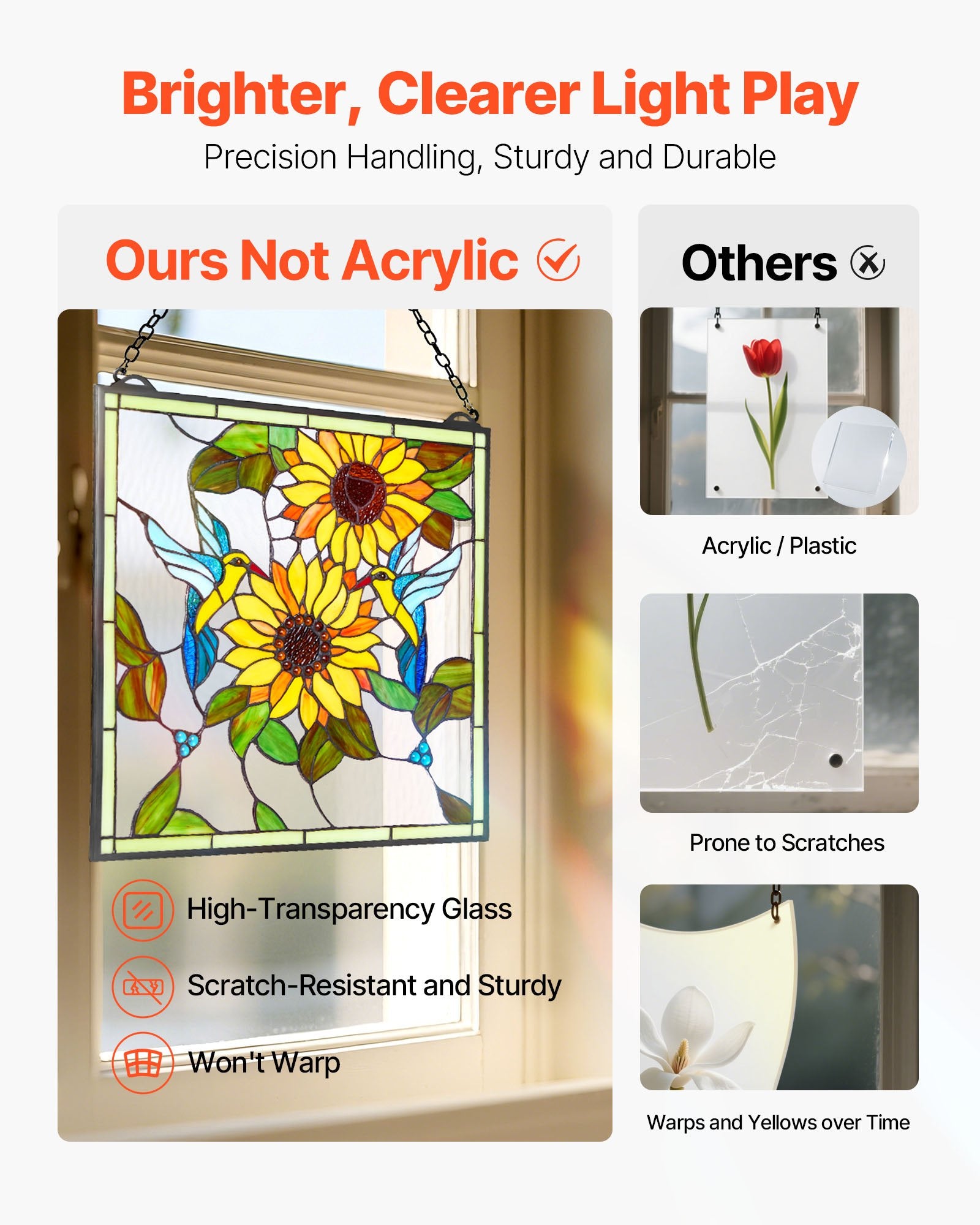 - Lasting Color Brilliance: Crafted with a mix of traditional techniques and modern technology, our hanging stained glass panel resists fading from sunlight or cleaning. The smooth glass edges and sturdy joints ensure beauty and durability