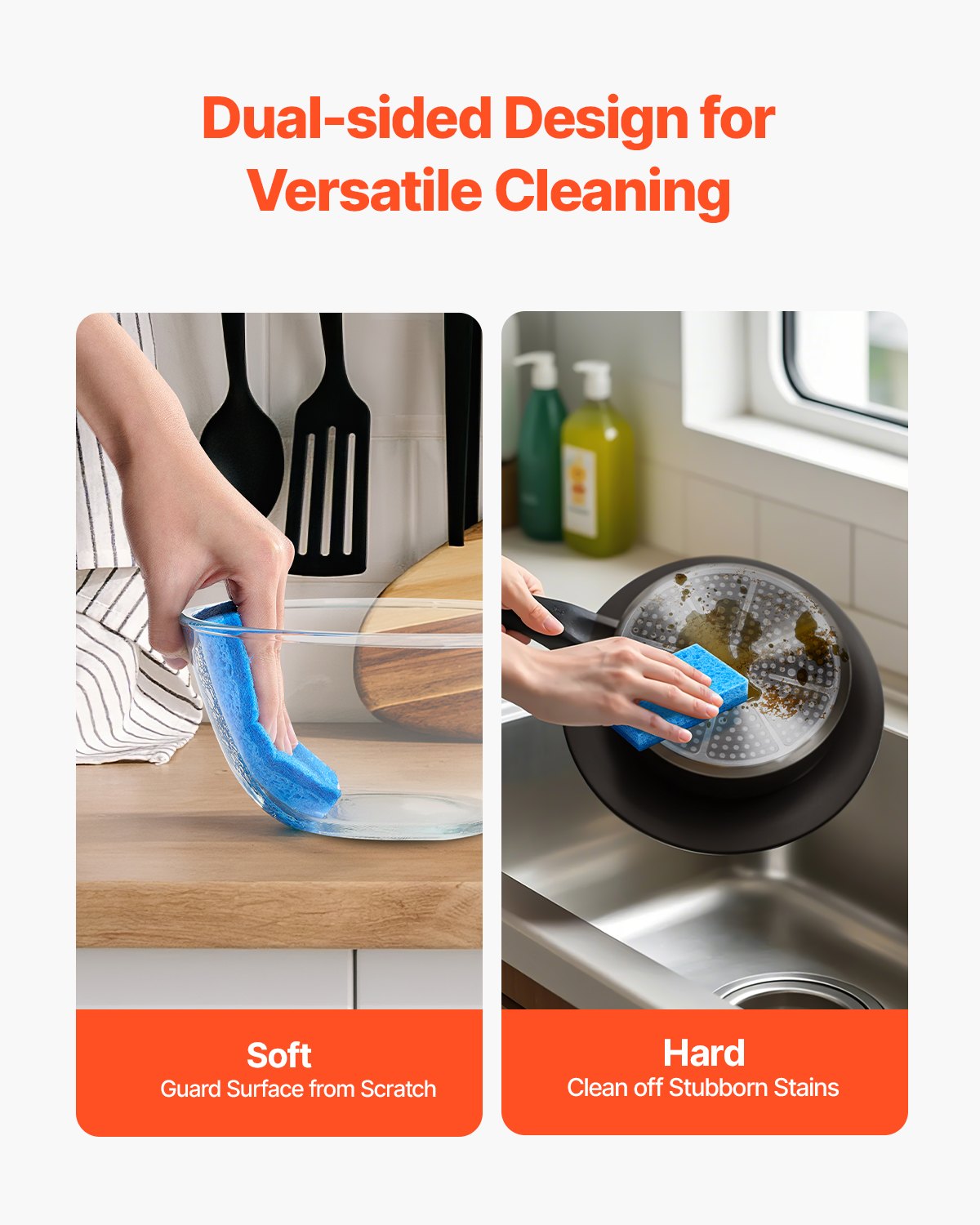 - Double-Sided Cleaning: With a dual-layer structure, one side provides powerful friction to move stains without leaving marks, while the other side absorbs water and locks in oil, rinsing clean instantly. It easily handles a variety of cleaning needs, from non-stick cookware and dishes to shower areas.
