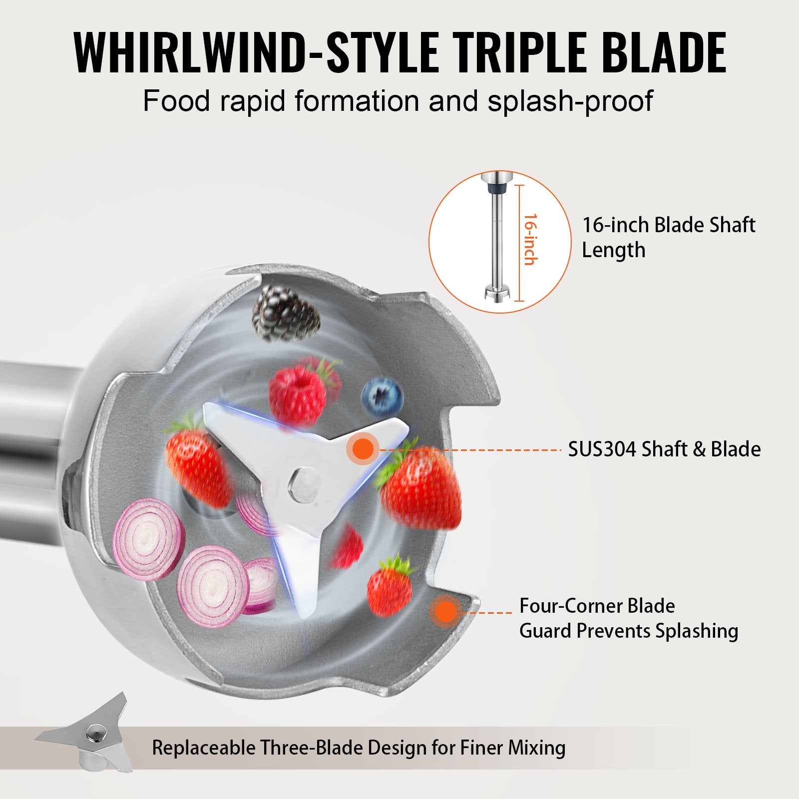 Commercial Immersion Blender, 500W Heavy Duty Hand Mixer, 16 inch Stepless Variable Speed Mixer with Stainless Steel Blade, Multi-Purpose Portable Mixer for Soup, Sauces, Mashed Potatoes, Cream