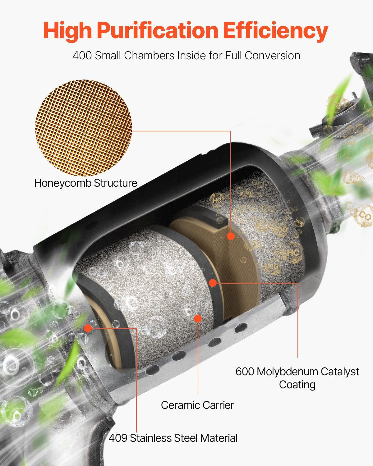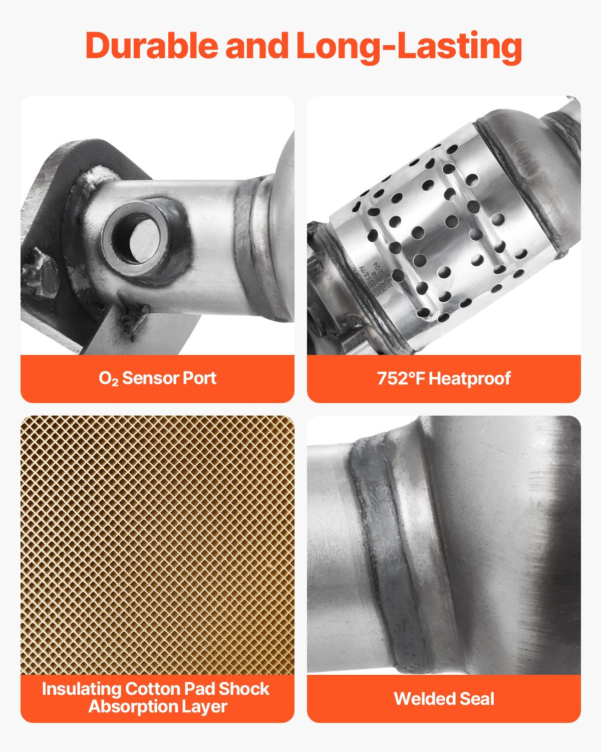 - Stainless Steel Construction: The high flow catalytic converter is constructed with heavy-duty T409 stainless steel that is heat-proof and rustproof. It is designed to withstand high temperatures and pressure within the exhaust system, ensuring long-lasting durability without worries of bending or melting
