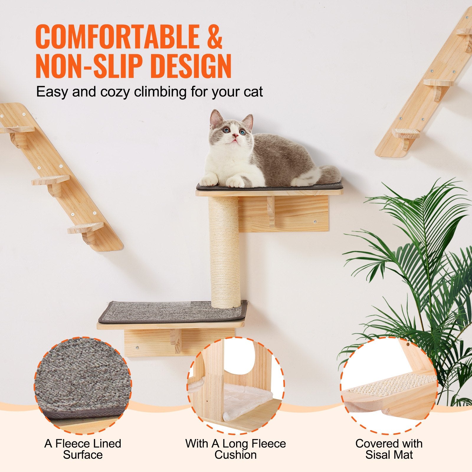 Wall Mounted Cat Shelves, Cat Wall Shelves and Perches with Jumping Boards, Cat Beds, Hammocks & Cat Tree, Cat Furniture and Shelves up to 40 lbs for Sleeping, Playing, Climbing, Set of 7