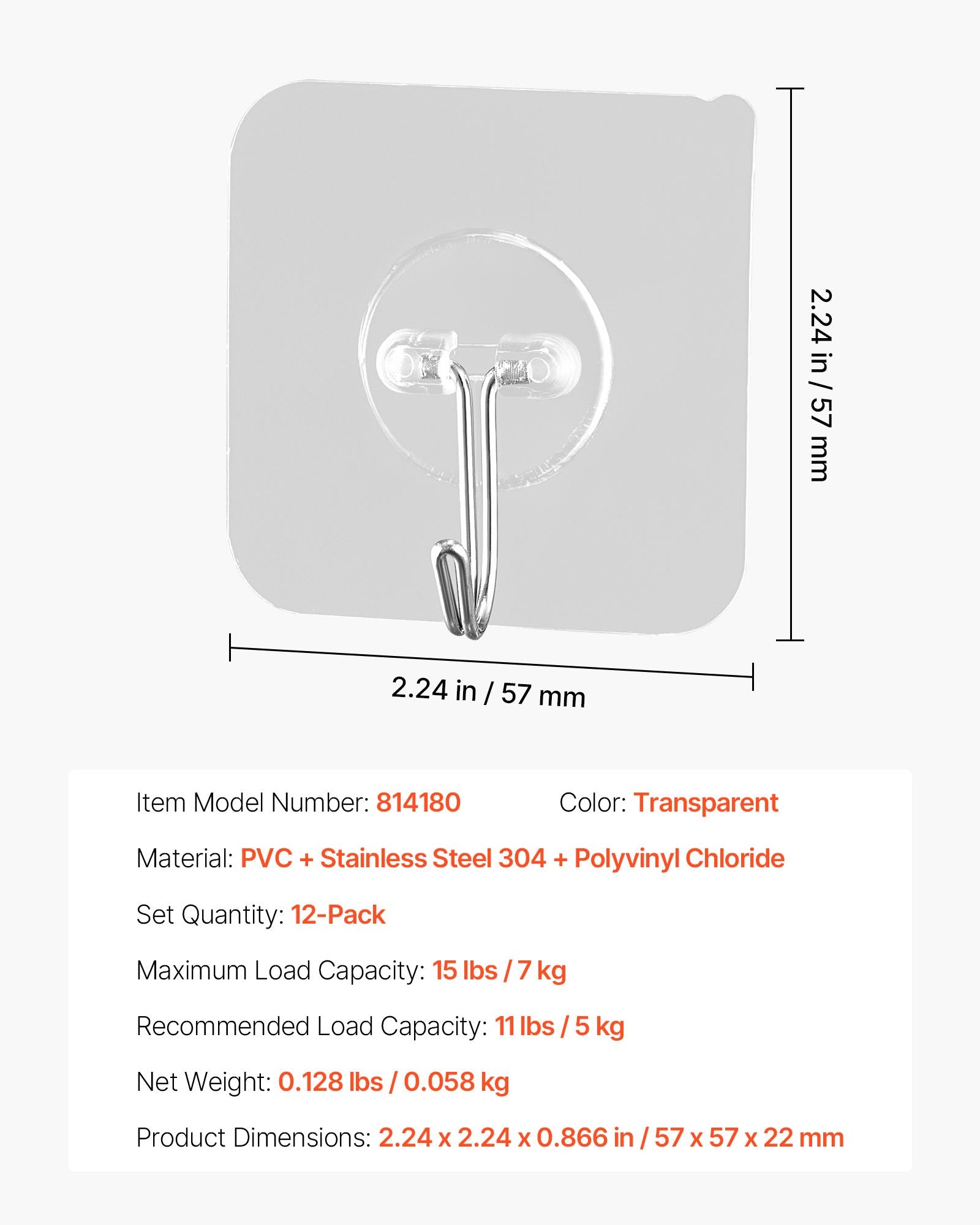 Adhesive Hooks, 12 Pack Self-Adhesive Towel Coat Hooks, Heavy-Duty Wall Hook Hold 15 lbs (Max), Stainless Steel Sticky Hanger, for Bathroom, Kitchen, Hanging Towel, Coat & Keys (Transparent)