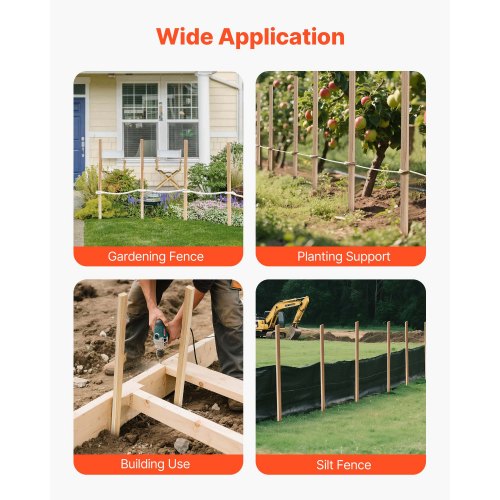 Bred användning: Träpinnarna är perfekta för att stödja klätterväxter som tomater och bönor, markera trädgårdszoner eller avgränsa tillfälliga byggarbetsplatser. Dessa träpinnar är mångsidiga och pålitliga i många miljöer.