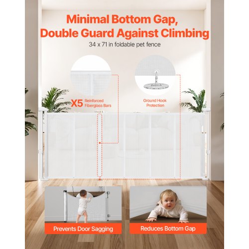 Safe mesh design: The mesh material is soft and gentle, providing better protection against accidental collisions for children and pets. In addition, our mesh gate has a high-strength structure that is scratch-resistant and durable, effectively resisting bumps and scratches from pets.