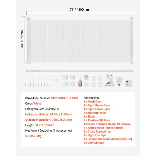 Extendable Design: This white mesh gate can be extended up to 193 cm wide and the mesh is 86 cm high, allowing you to adjust the opening size as needed. The extendable design makes it easy to store when not in use, taking up minimal space and keeping your home neat and spacious.