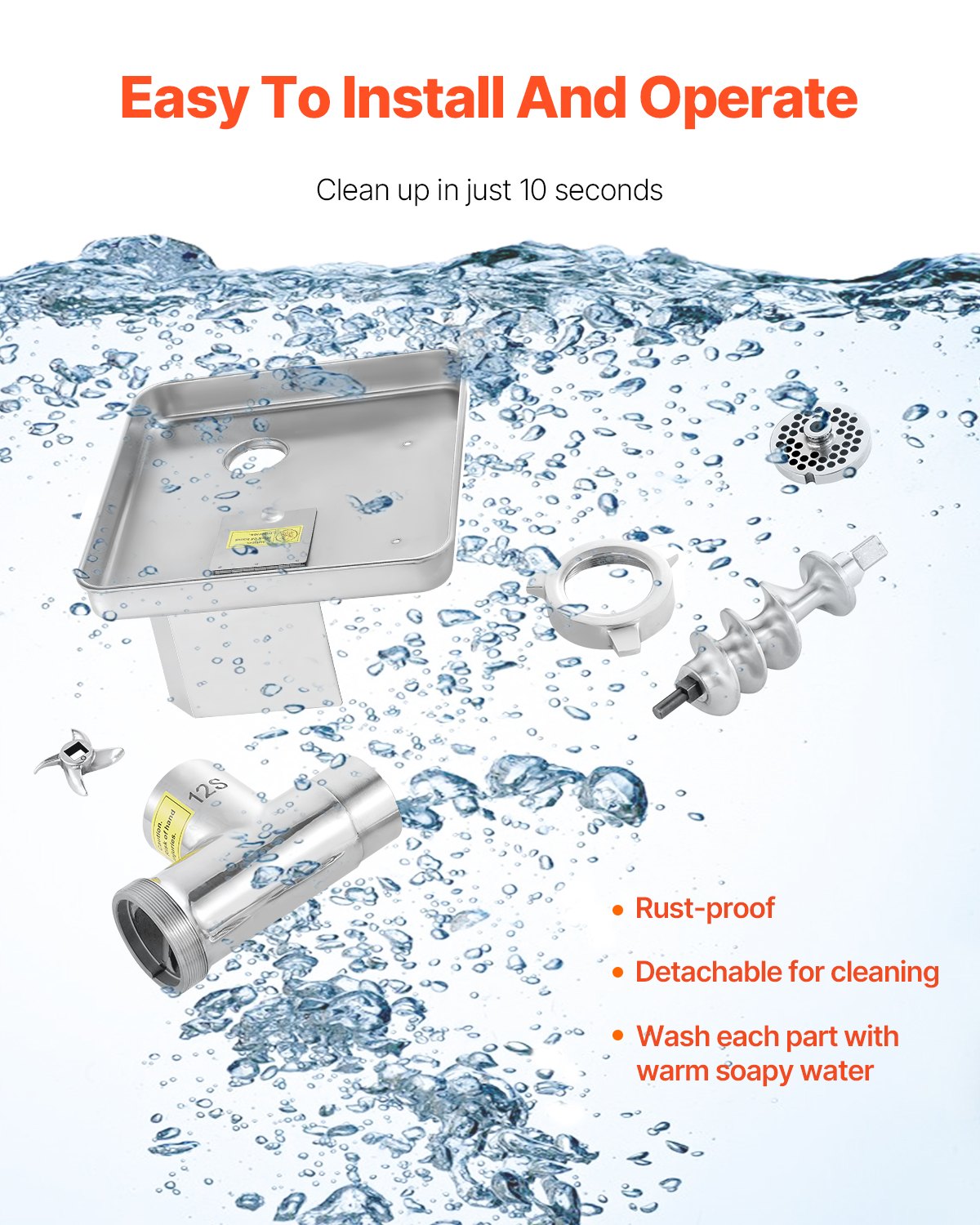Detachable Design: The blade is detachable for easy cleaning. Designed for quick disassembly, it allows for efficient cleaning of meat residue, grease, dust and hair, saving time and effort while ensuring a clean cooking environment.