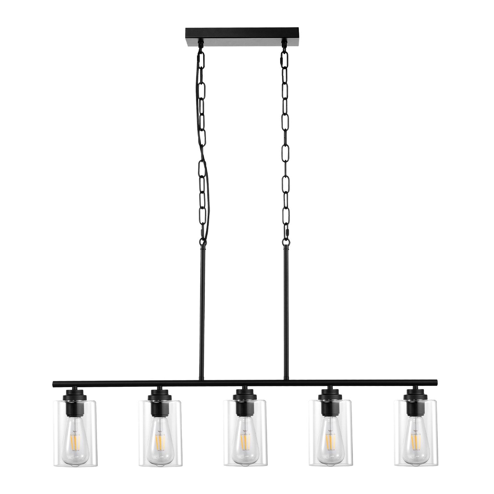 Compatible with all E27 bulbs: Designed with 5 bulbs, each supporting up to 60W, our kitchen island with ceiling lights is compatible with all types of E27 bulbs, including LED, halogen, incandescent and CFL bulbs. Customize your lighting experience with the bulbs of your choice. (Note: Bulbs are not included.)
